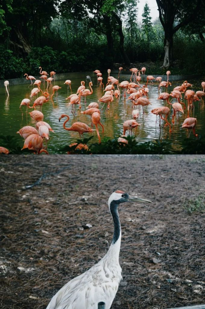 从景区外的道路向七星岩一点点靠近的过程中,像是渐渐进入了山水画卷中,突然就好羡慕生活的肇庆市区的朋友!七星岩,得名于七座石灰岩峰,排列的形状像天上的北斗七星,有着“岭南第一奇观”的美誉。环湖一周大概10公里,可以步行、坐电瓶车或者坐游船。景区内主要有水月岩云、星岩春晓、天柱摘星、星岩烟雨、玉屏叠翠、千年诗廊、水中林趣、卧佛含丹、仙鹤呈祥、石洞古庙等景点。在星湖国家湿地公园,还有着南方最大的丹顶鹤生态园。你可以体验到亲手喂丹顶鹤的乐趣,花花也是第一次知道,原来丹顶鹤吃的是小泥鳅!这里还有自带滤镜的火烈鸟,别忘了合照哦。门票小tips:花花建议大家可以购买“星湖卡”,一年内无限次游玩七星岩、鼎湖山、星湖国家公园,一次就回本。鼎湖山