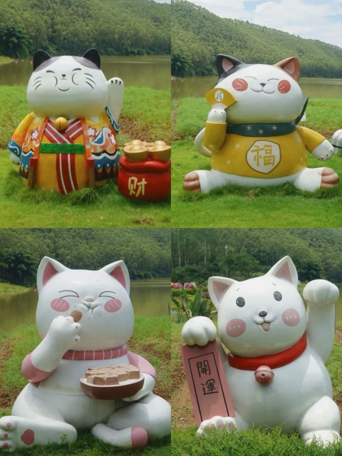 谁可以拒绝一只可爱的小猫咪!要是一只不行,那就给你来一堆!广东首家以“猫”为主题的乐园,肇庆猫爪谷!还没进入景区,花花已经被游客中心的各种猫咪图案俘获了。