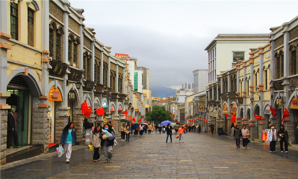 夕阳西下,站在陡街上往下看,梧桐树已横七竖八躺倒的上西街显得敞亮无比。两旁一百多年前的法式建筑在拆下各种招牌后,如今素面朝天,露出了本真唯美的容颜,一百多年来古典端庄的伫立,此刻一抹夕阳淡淡的余晖,看上去,愈发的沧桑和怀旧。