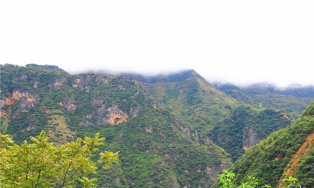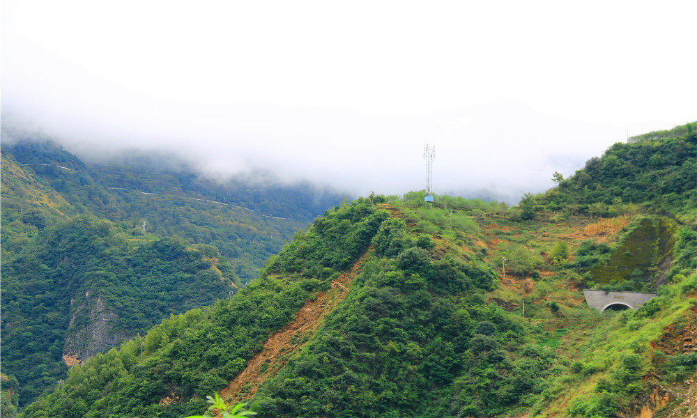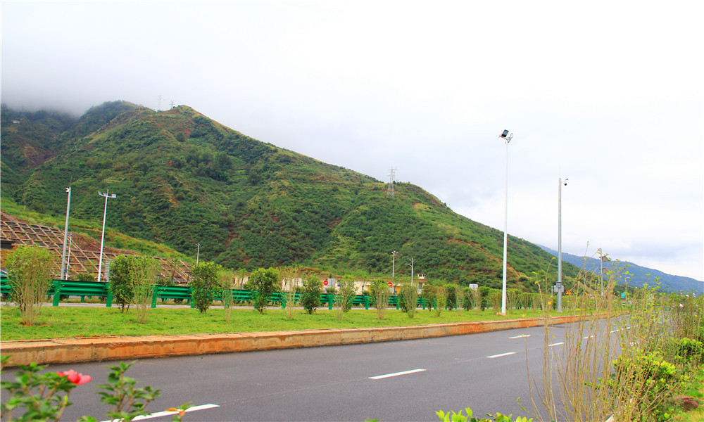 沿途一路的山山水水,山水相连,连绵起伏。山腰盘旋的那曲折蜿蜒的公路如缕缕飘带缠绕在那青山之中,成为一道独特亮丽的风景。朦胧的远山,笼罩着一层轻纱,影影绰绰,在飘渺的云烟中忽远忽近,若即若离,看到此场景,只想感慨一句:“此景只应天上有,人间能得几回闻