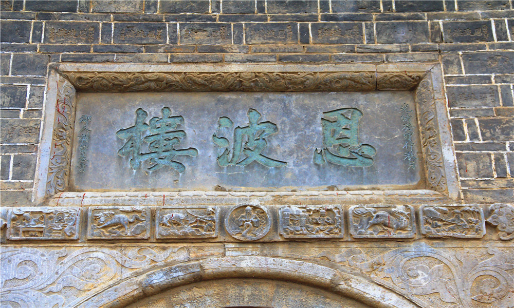 当时此地一片汪洋,楼的四周叠浪涌碧。 云南总督爱星阿游览登楼,见沿闸柳树映日摇风,楼下水光滟滟,叠浪摇天,凤凰山和楼阁倒影参差,有蜃楼海市之风,遂更名并题额恩波楼,意为皇恩浩荡。