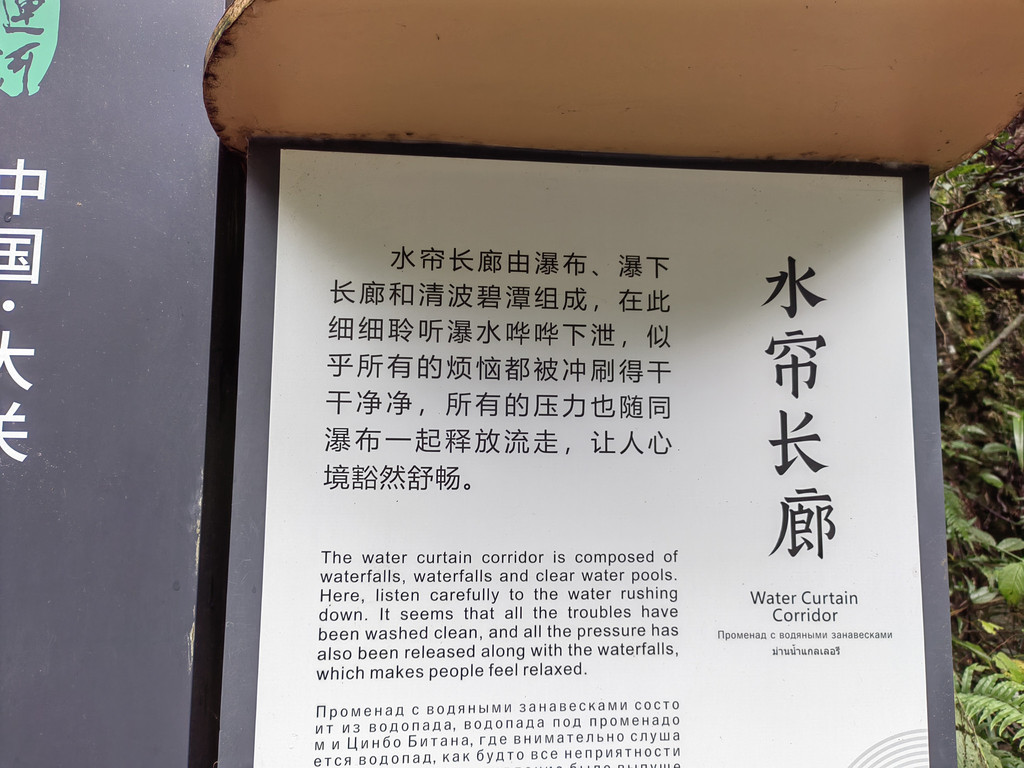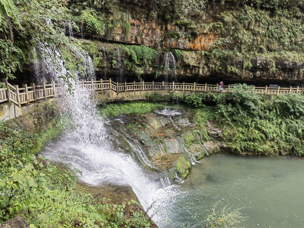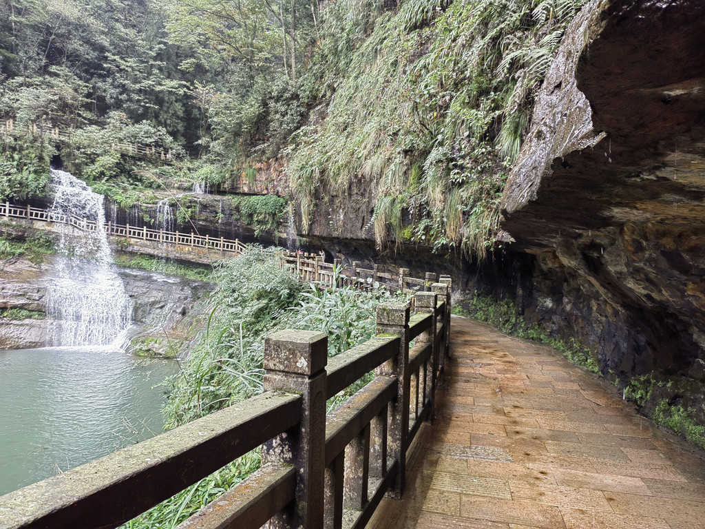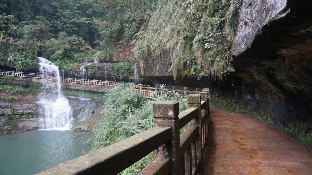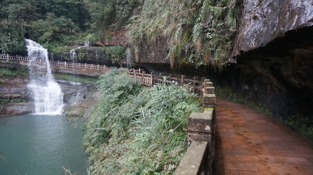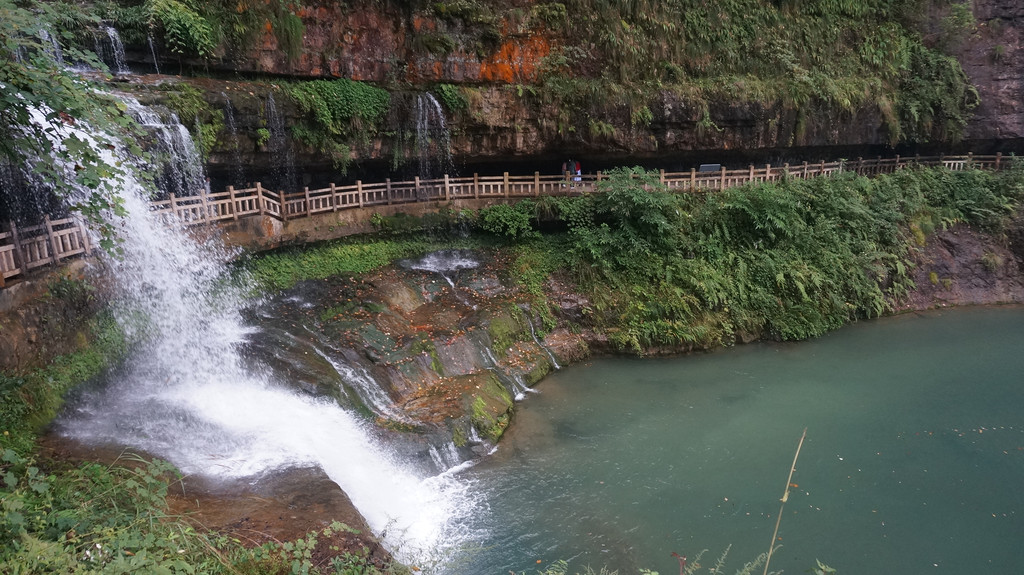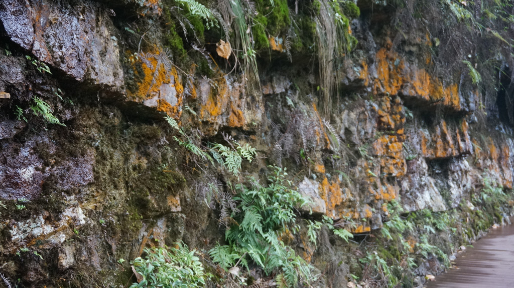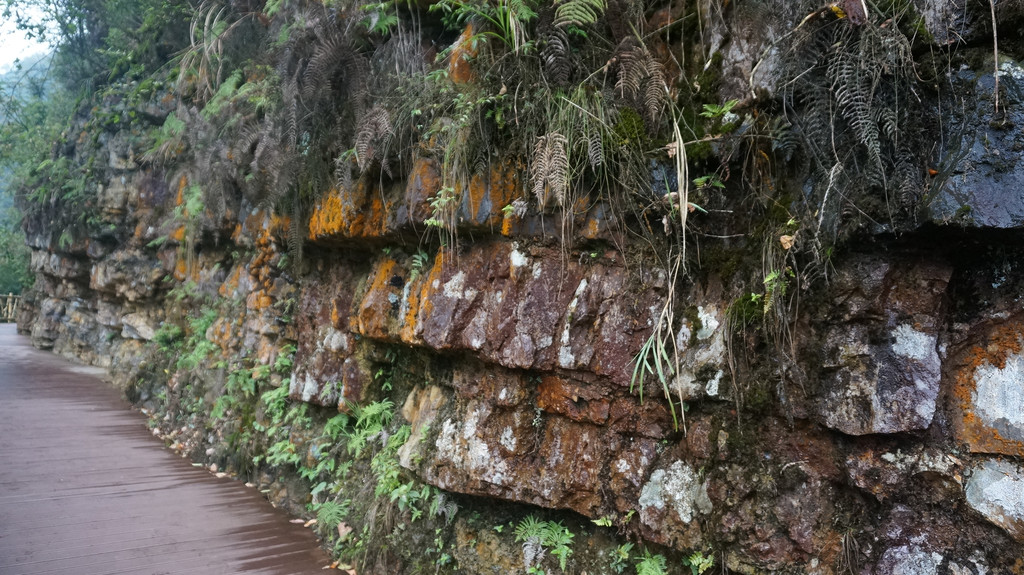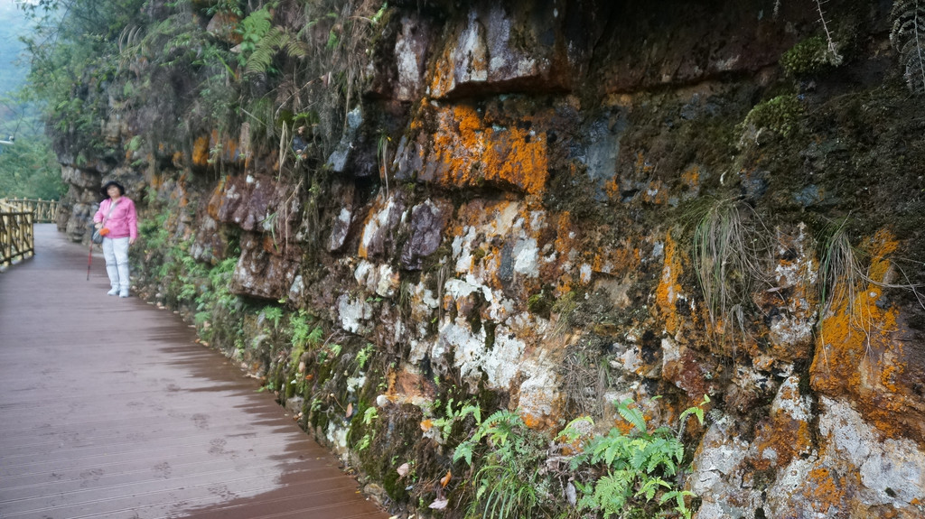 由于当地特有的温度和湿度,景区内有一片崖壁长满了颜色各异的苔藓,五颜六色,甚是好看。