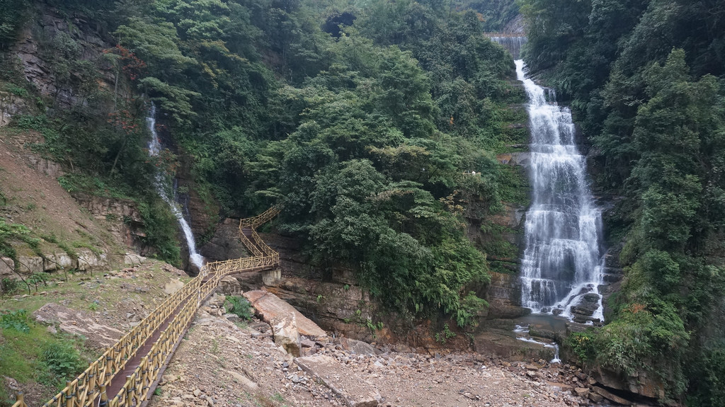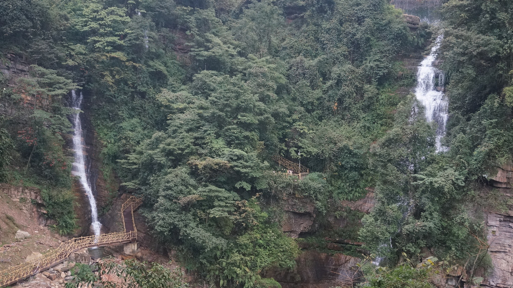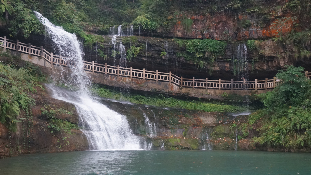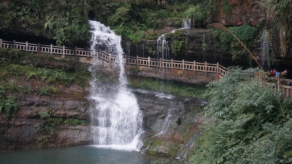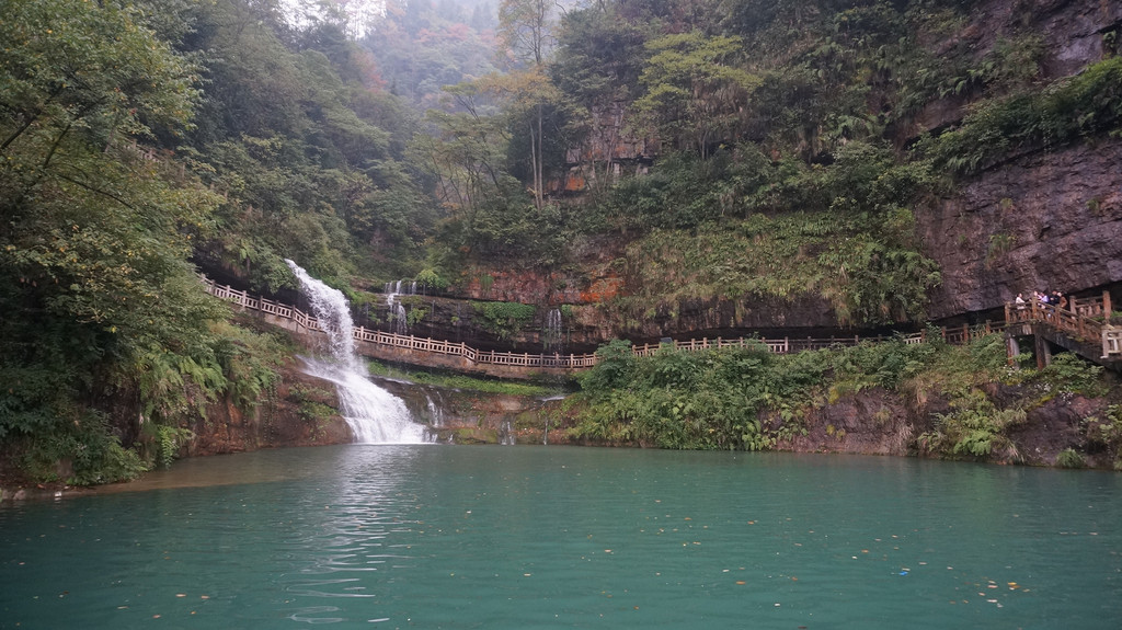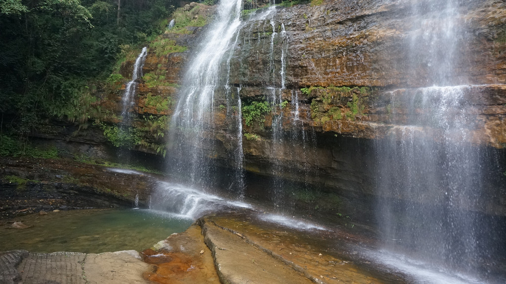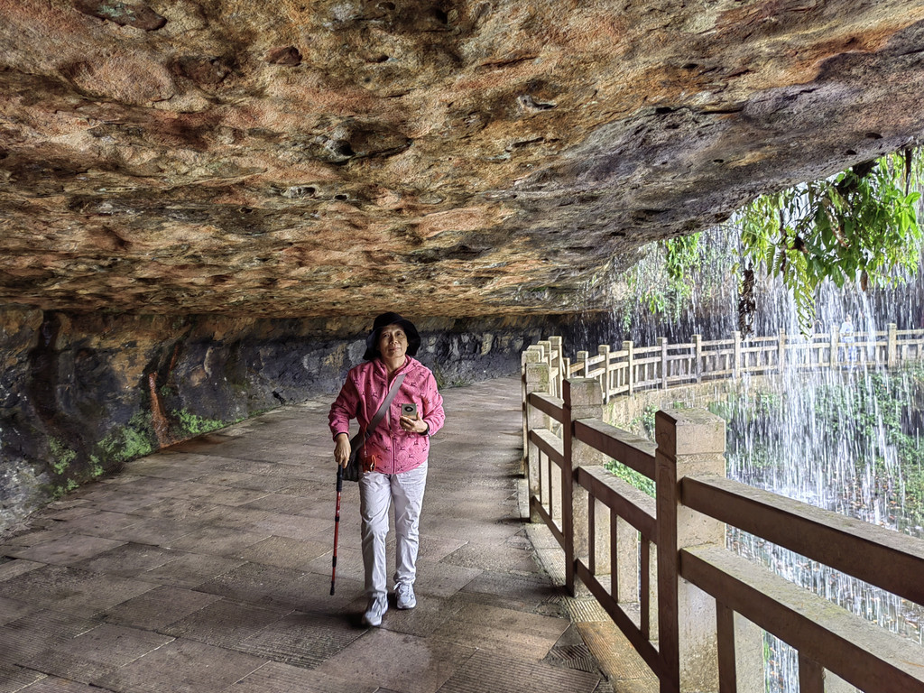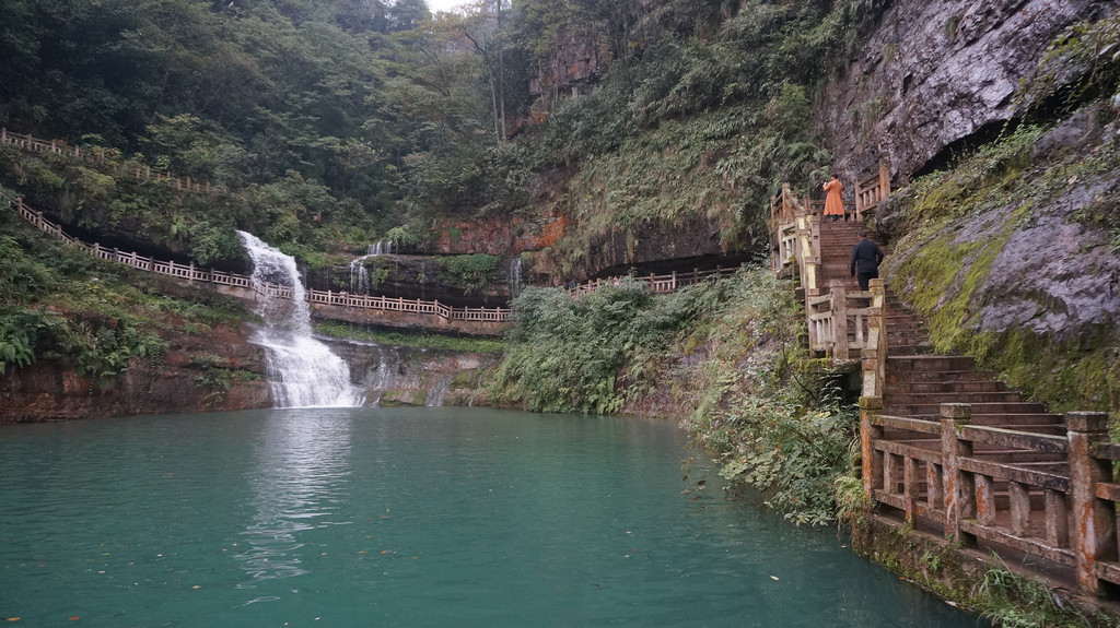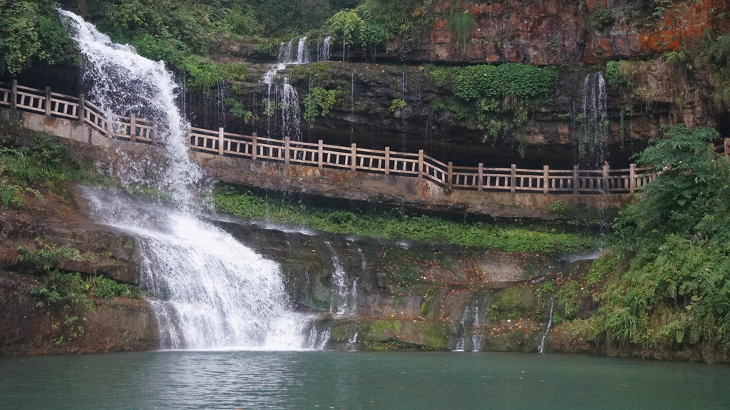 由于当地特有的温度和湿度,景区内有一片崖壁长满了颜色各异的苔藓,五颜六色,甚是好看。