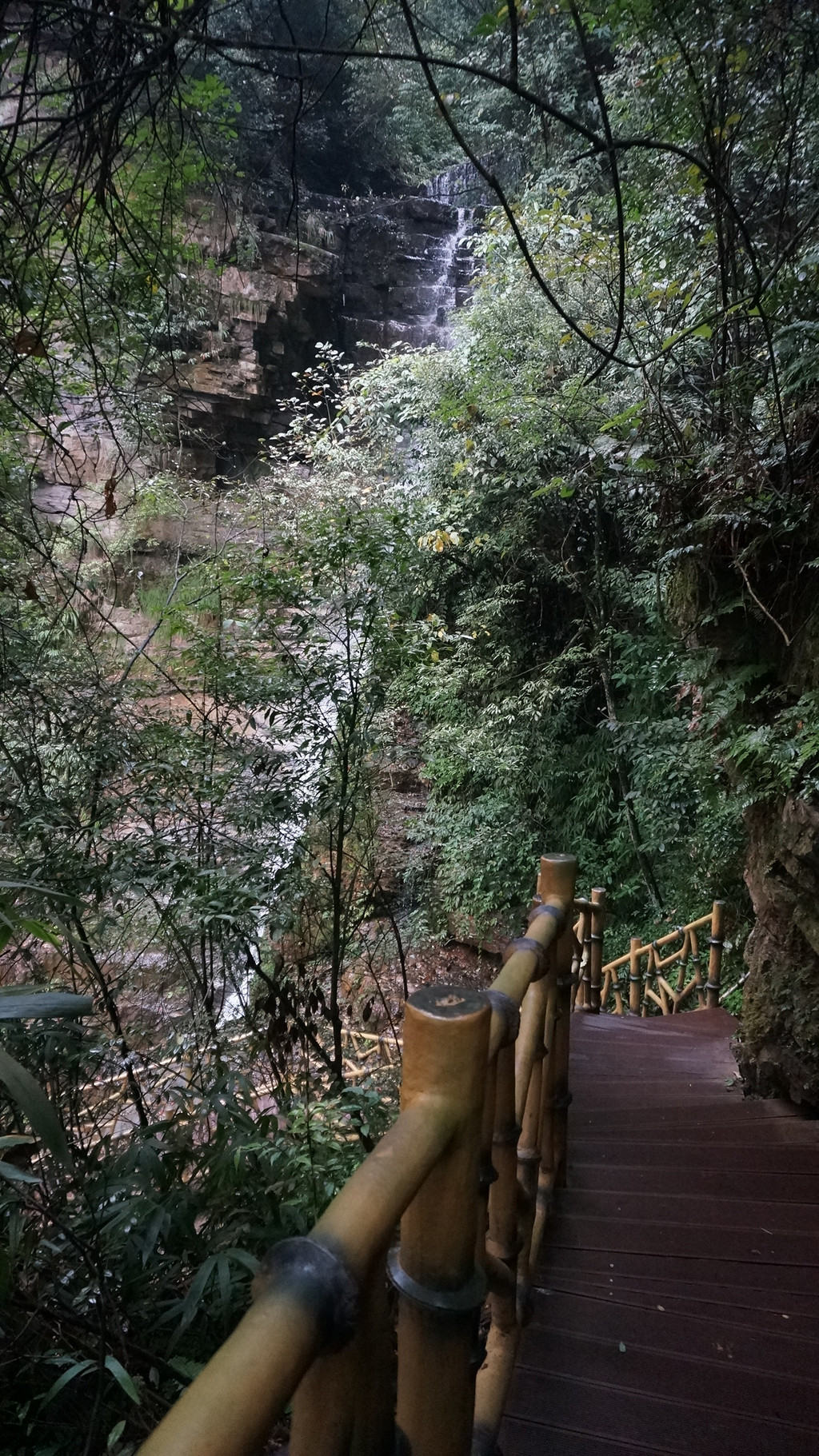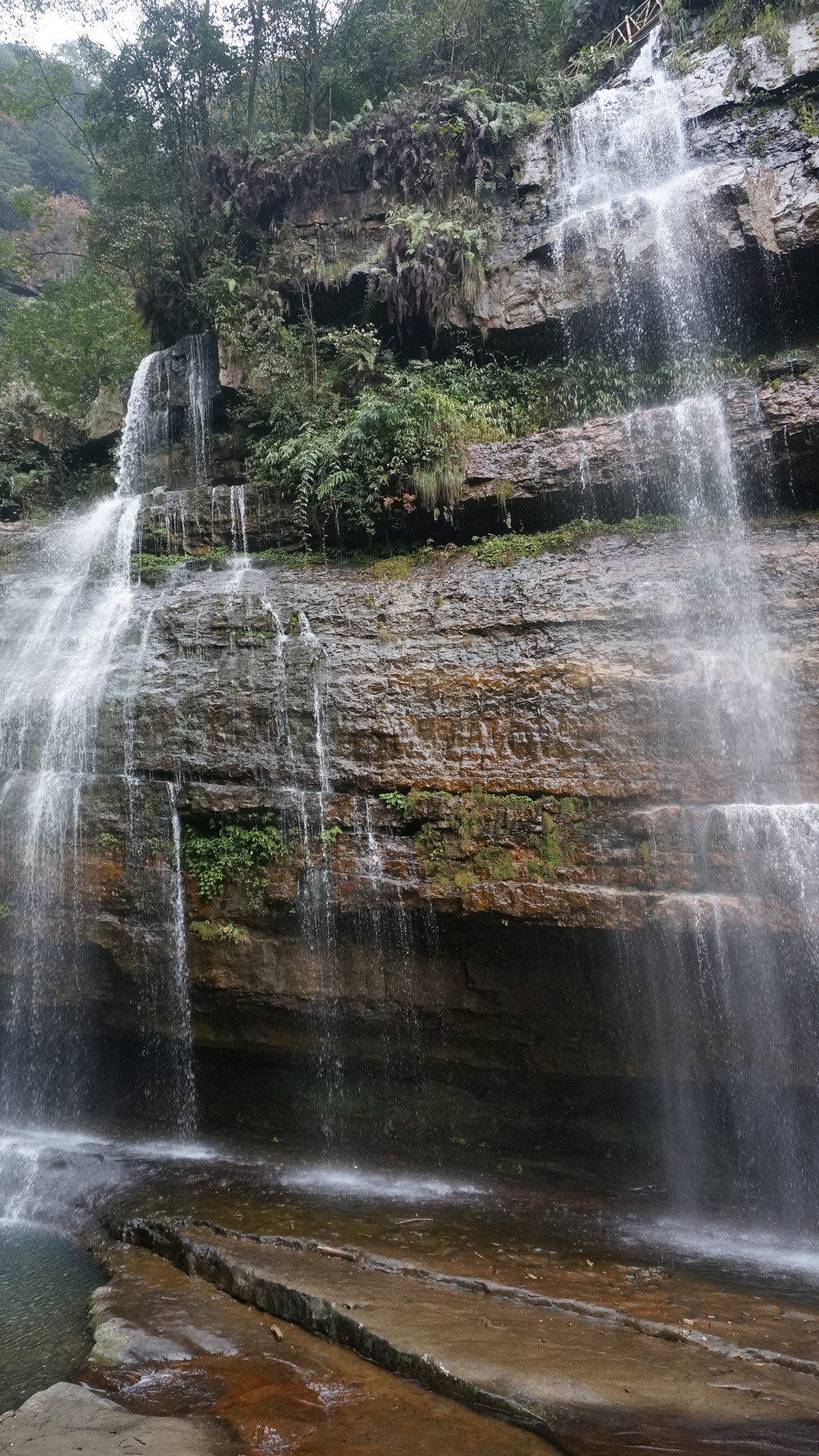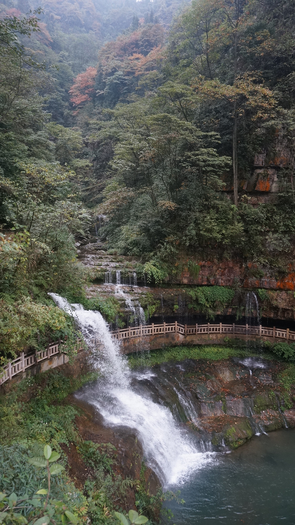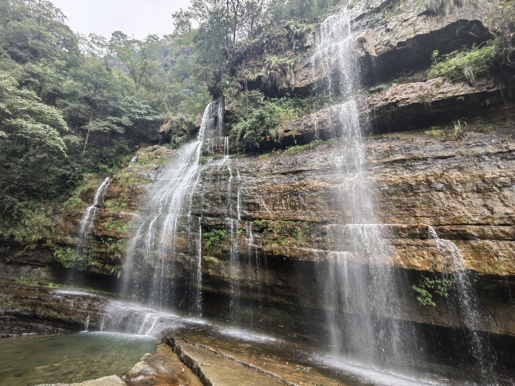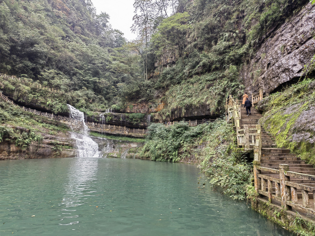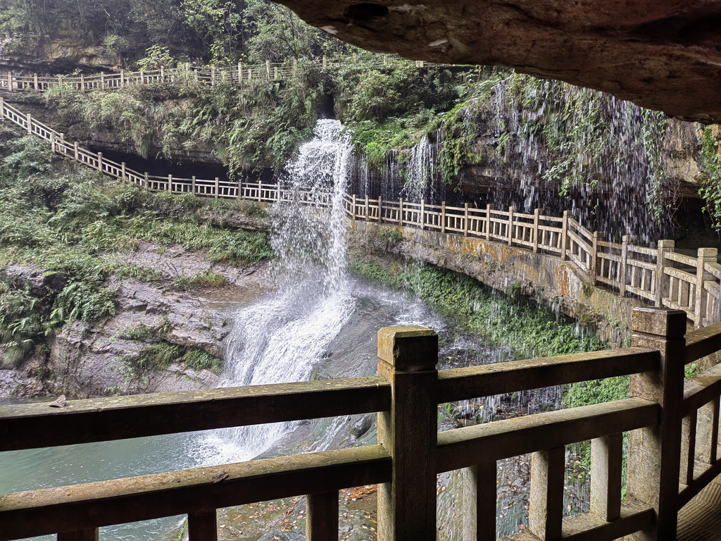 由于当地特有的温度和湿度,景区内有一片崖壁长满了颜色各异的苔藓,五颜六色,甚是好看。