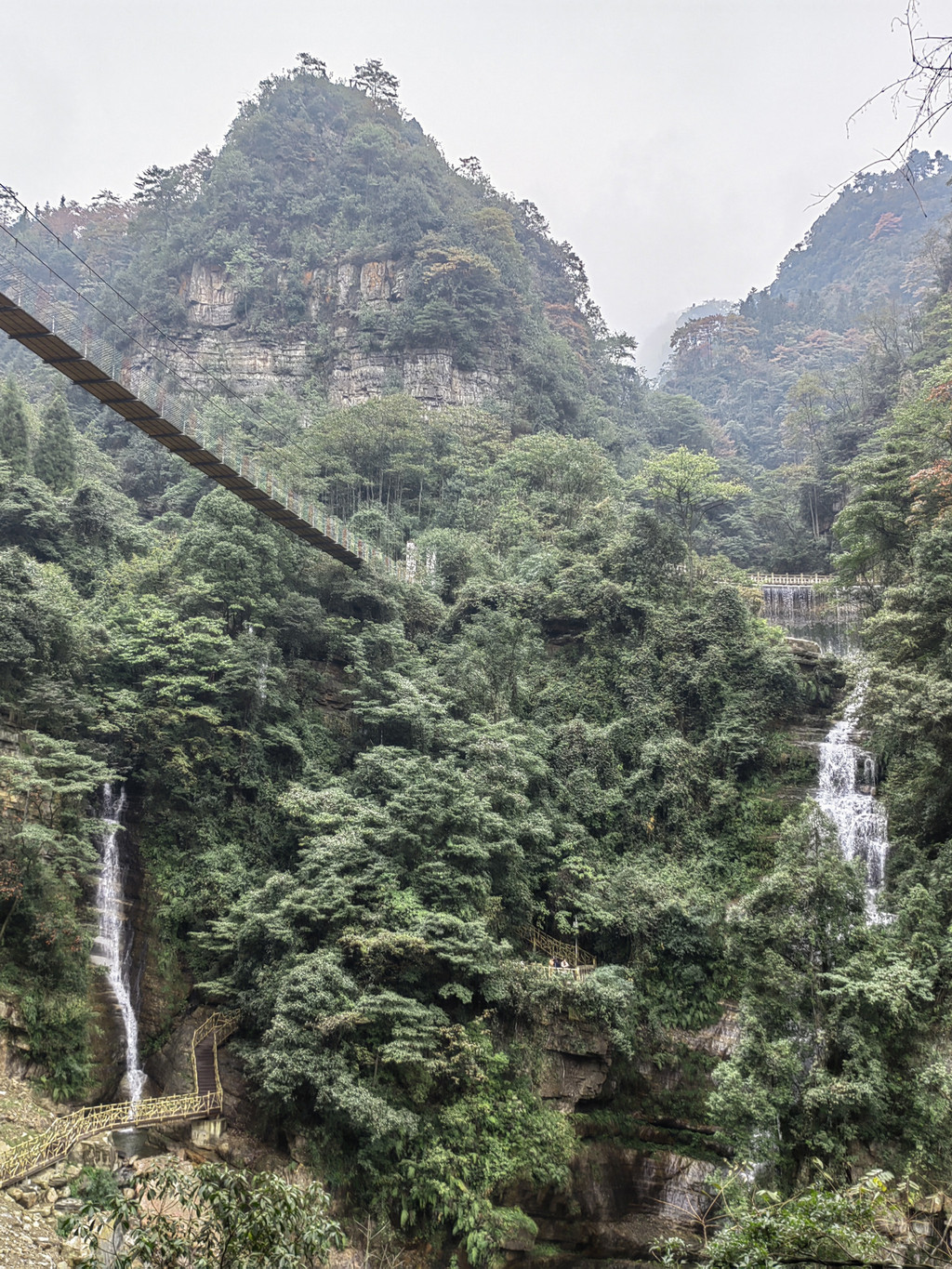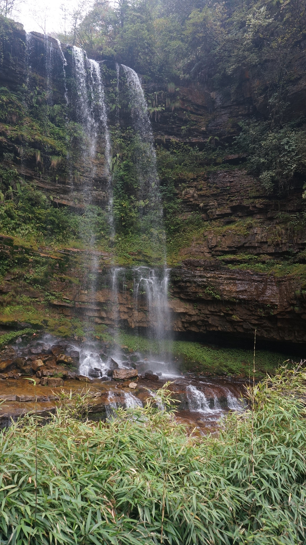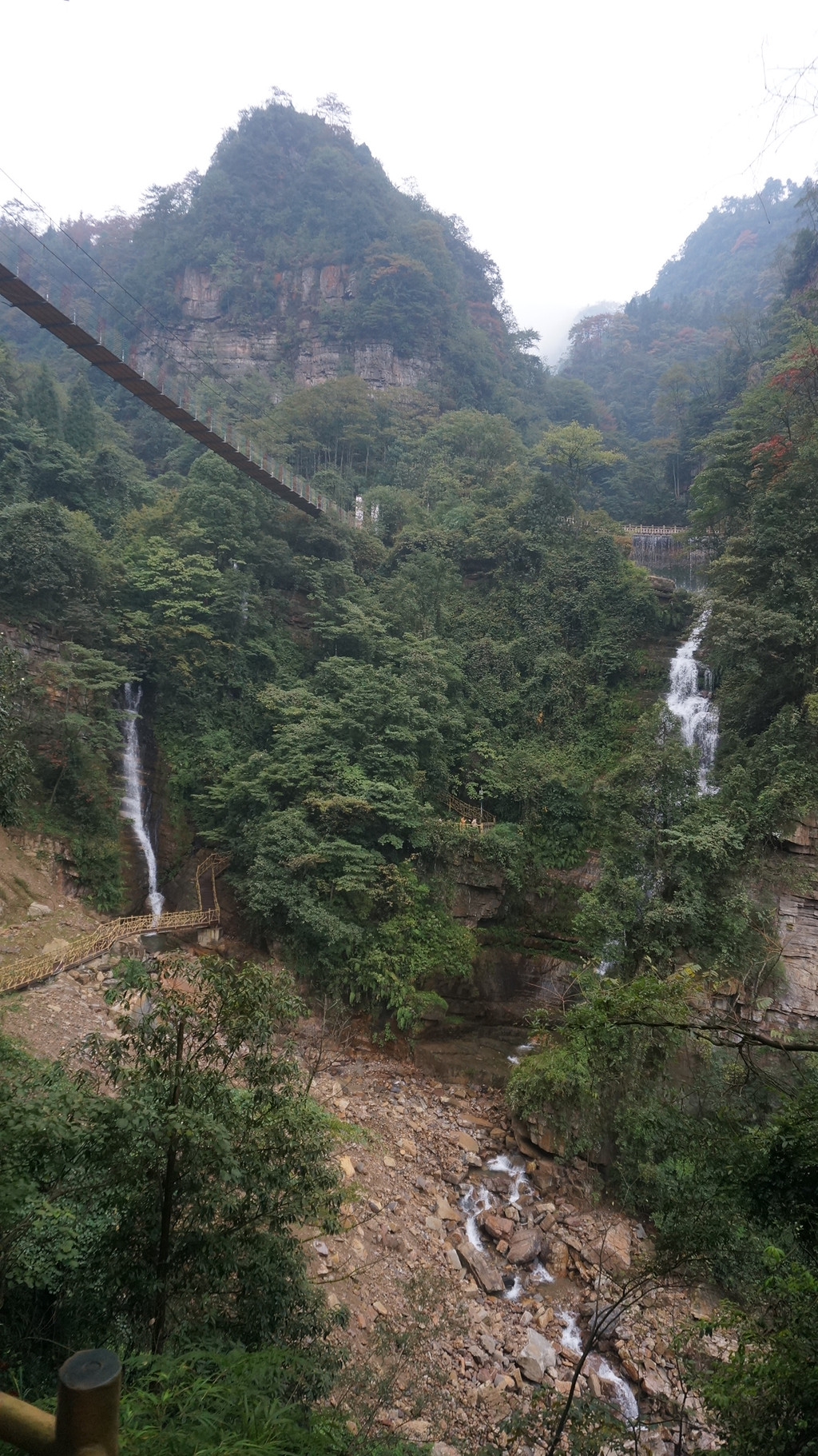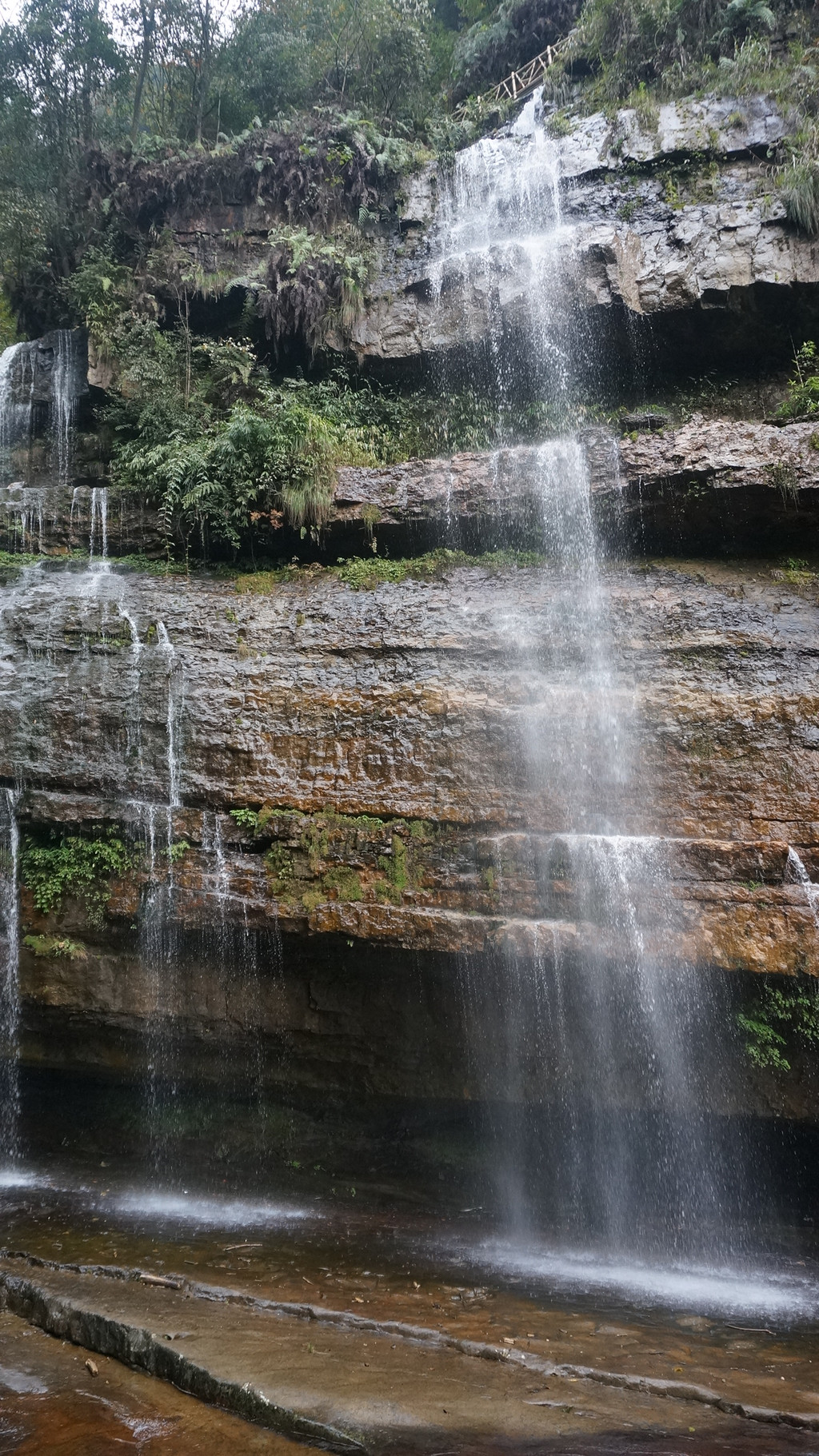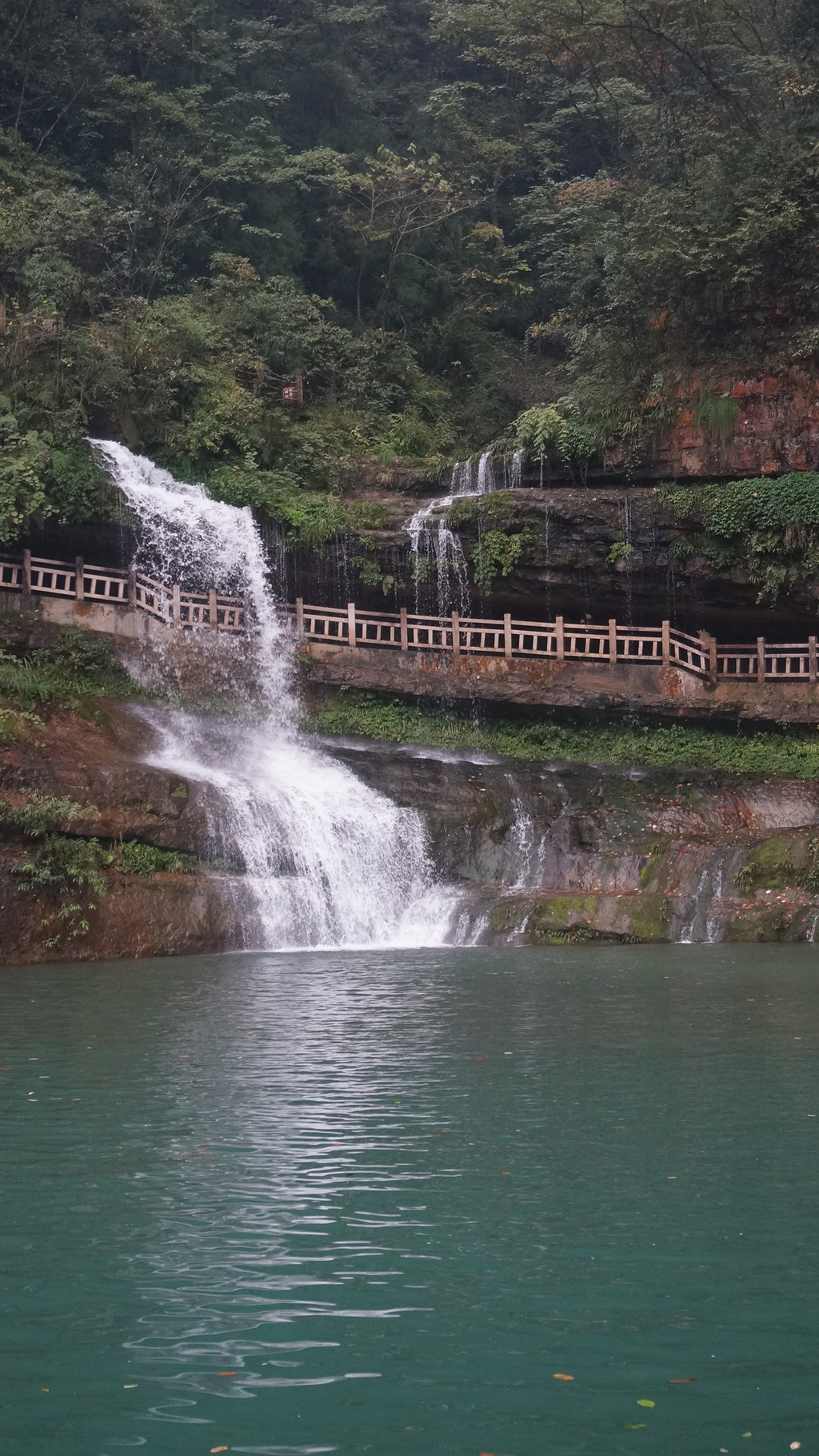由于当地特有的温度和湿度,景区内有一片崖壁长满了颜色各异的苔藓,五颜六色,甚是好看。