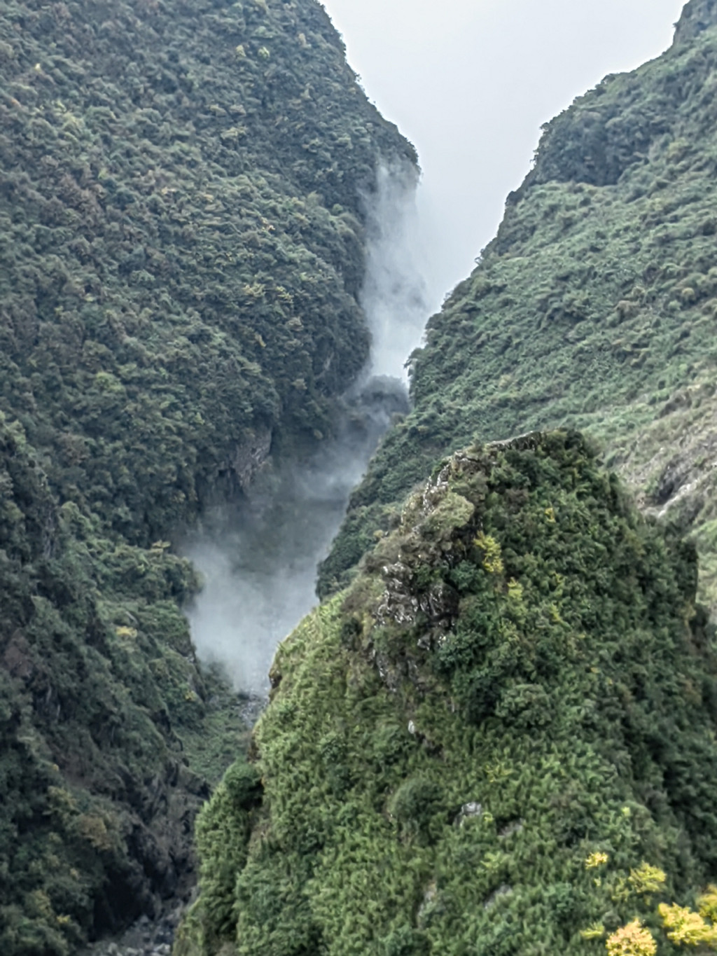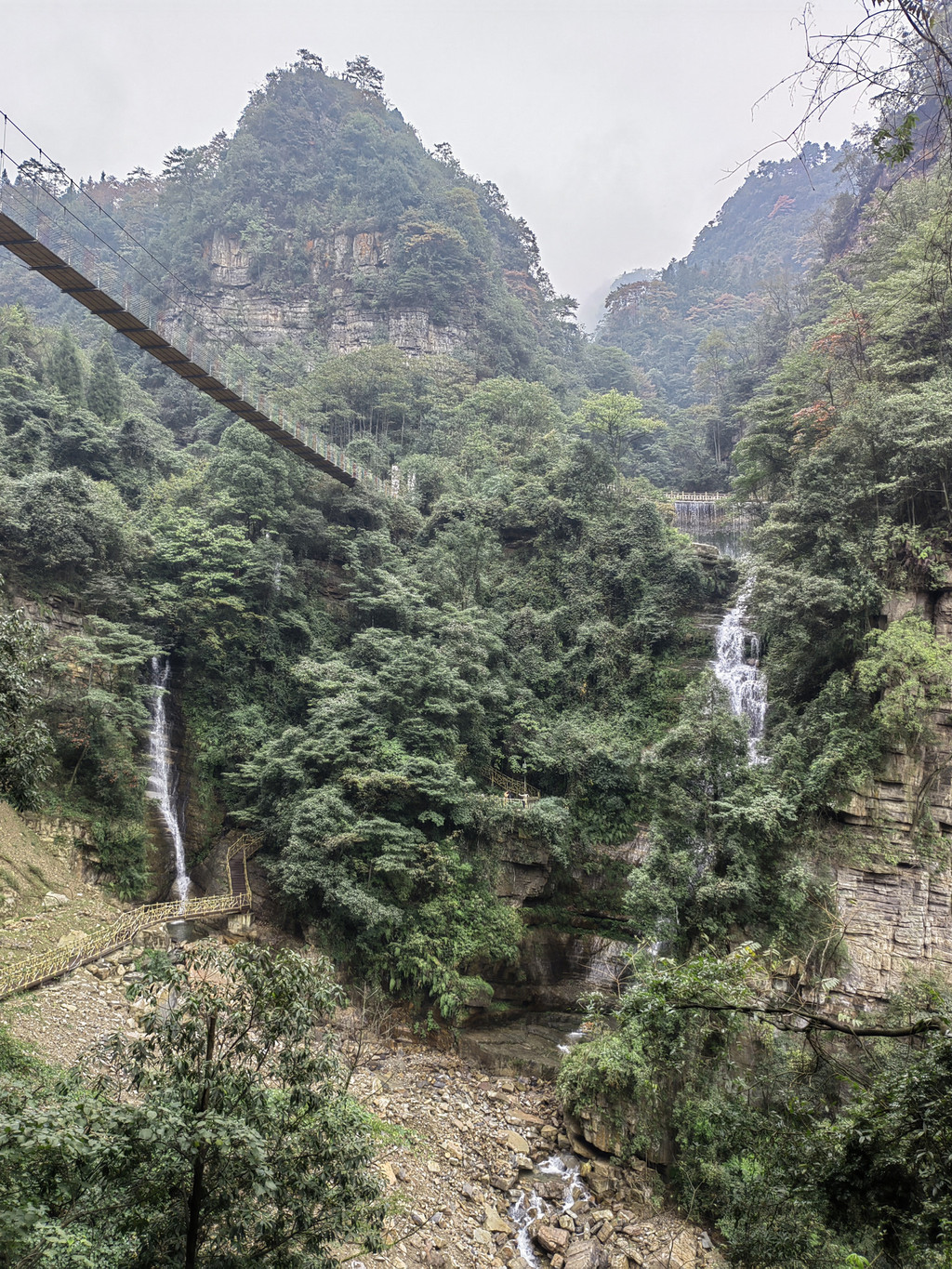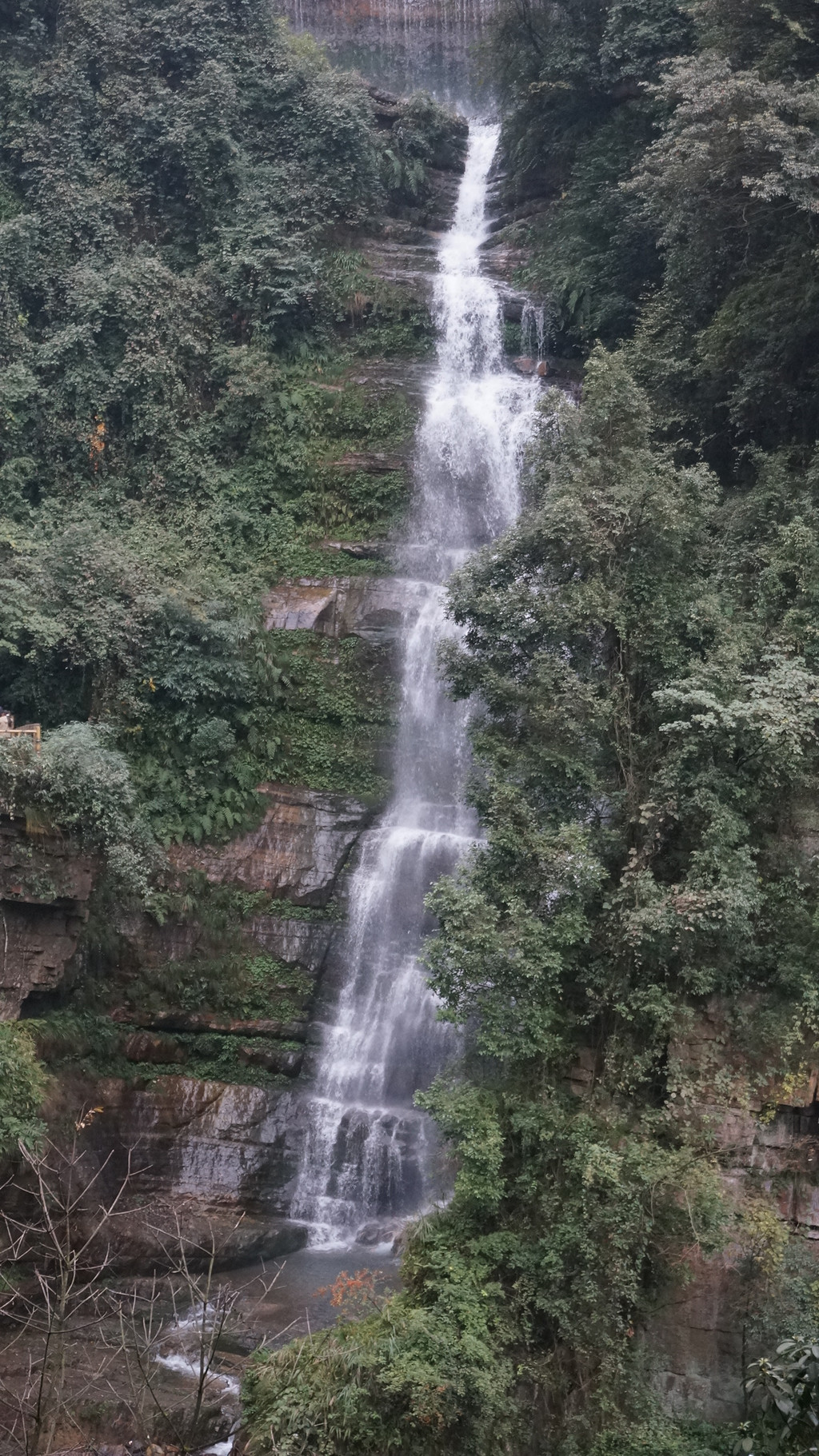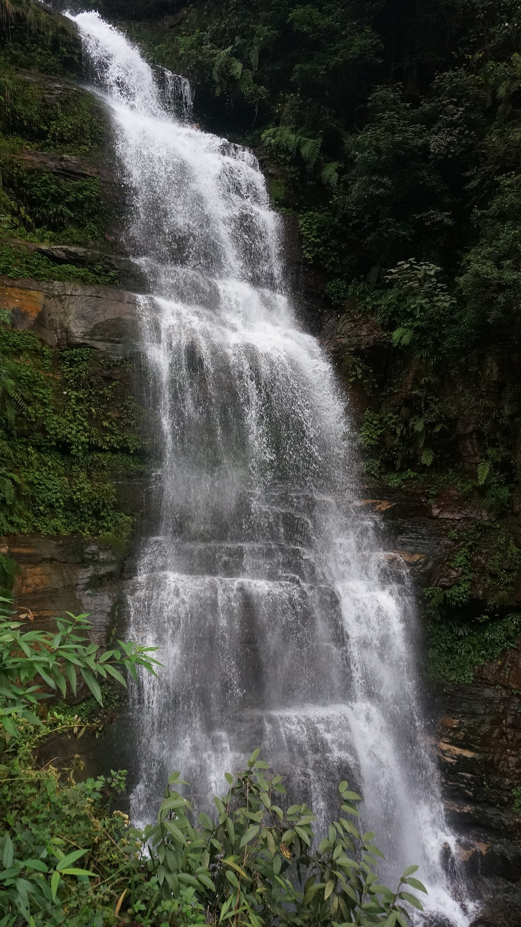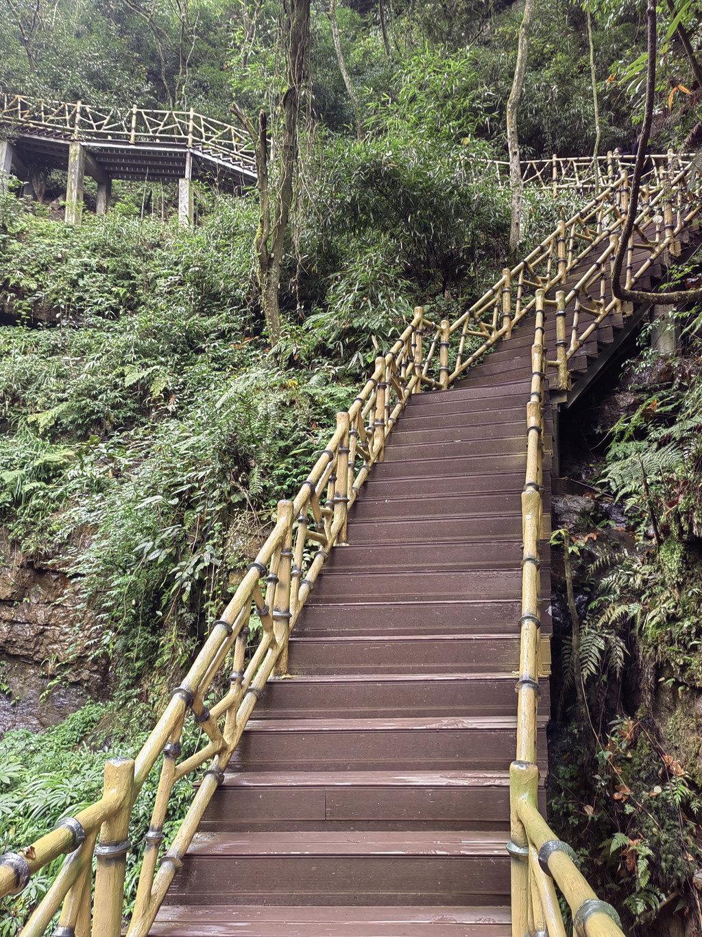由于当地特有的温度和湿度,景区内有一片崖壁长满了颜色各异的苔藓,五颜六色,甚是好看。