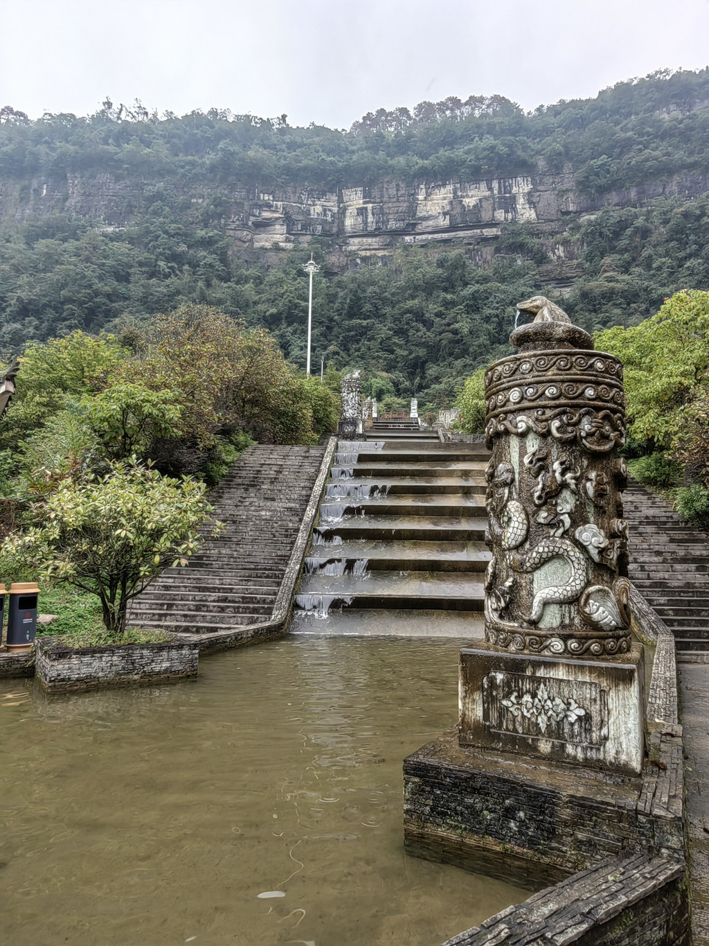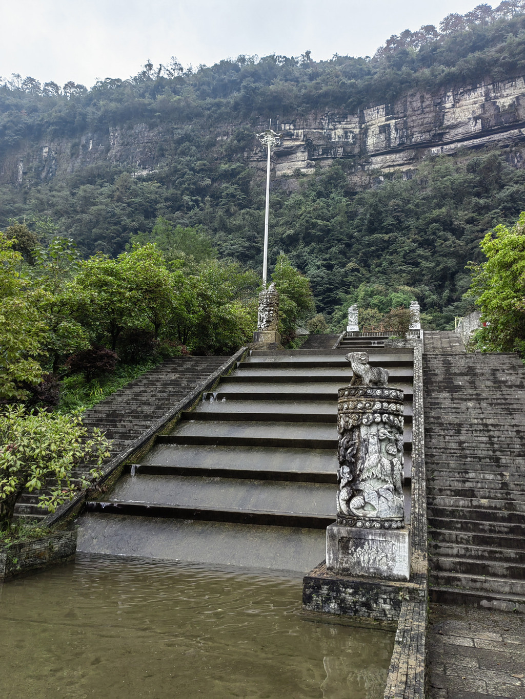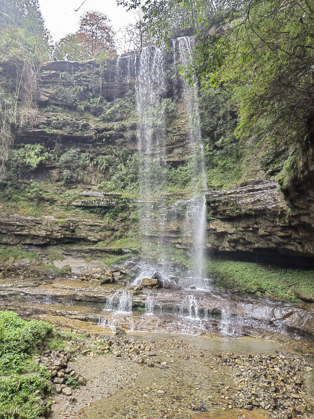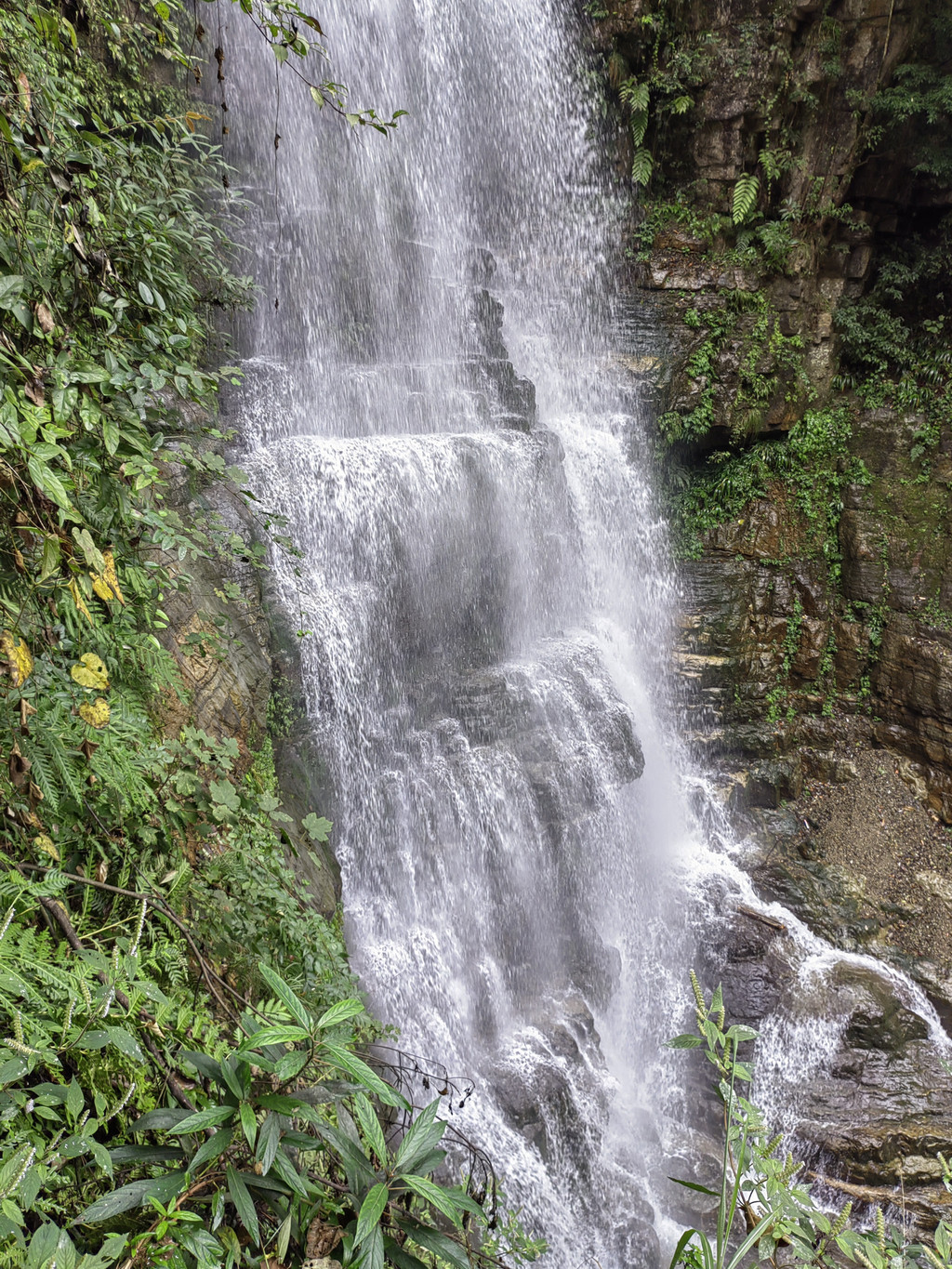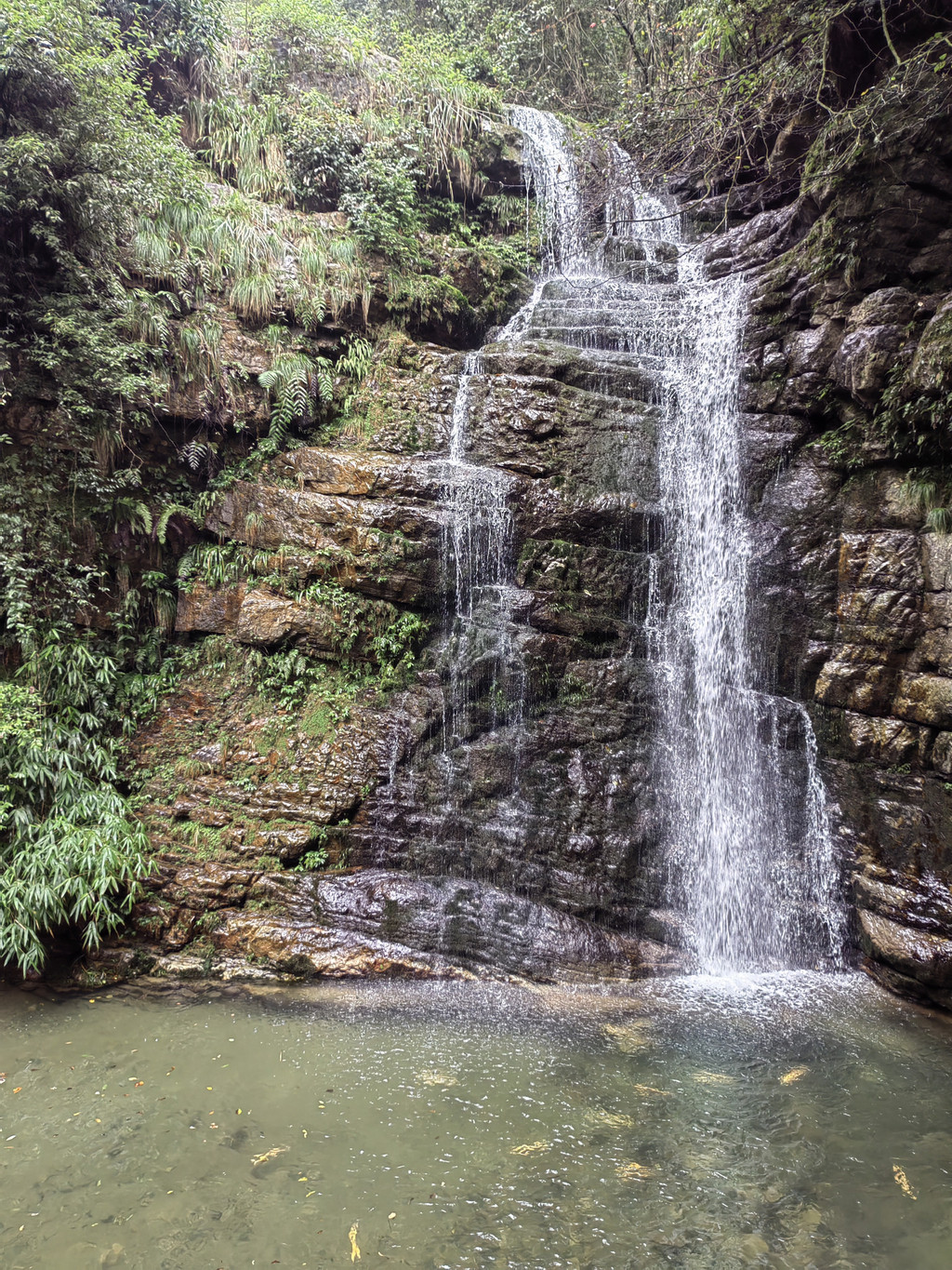 由于当地特有的温度和湿度,景区内有一片崖壁长满了颜色各异的苔藓,五颜六色,甚是好看。