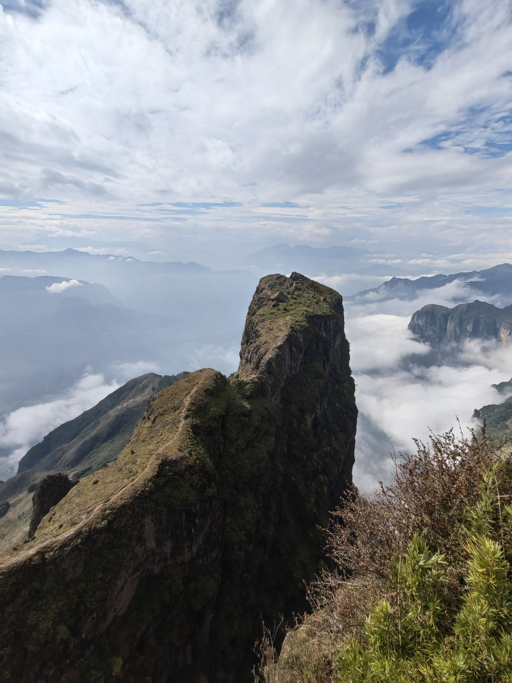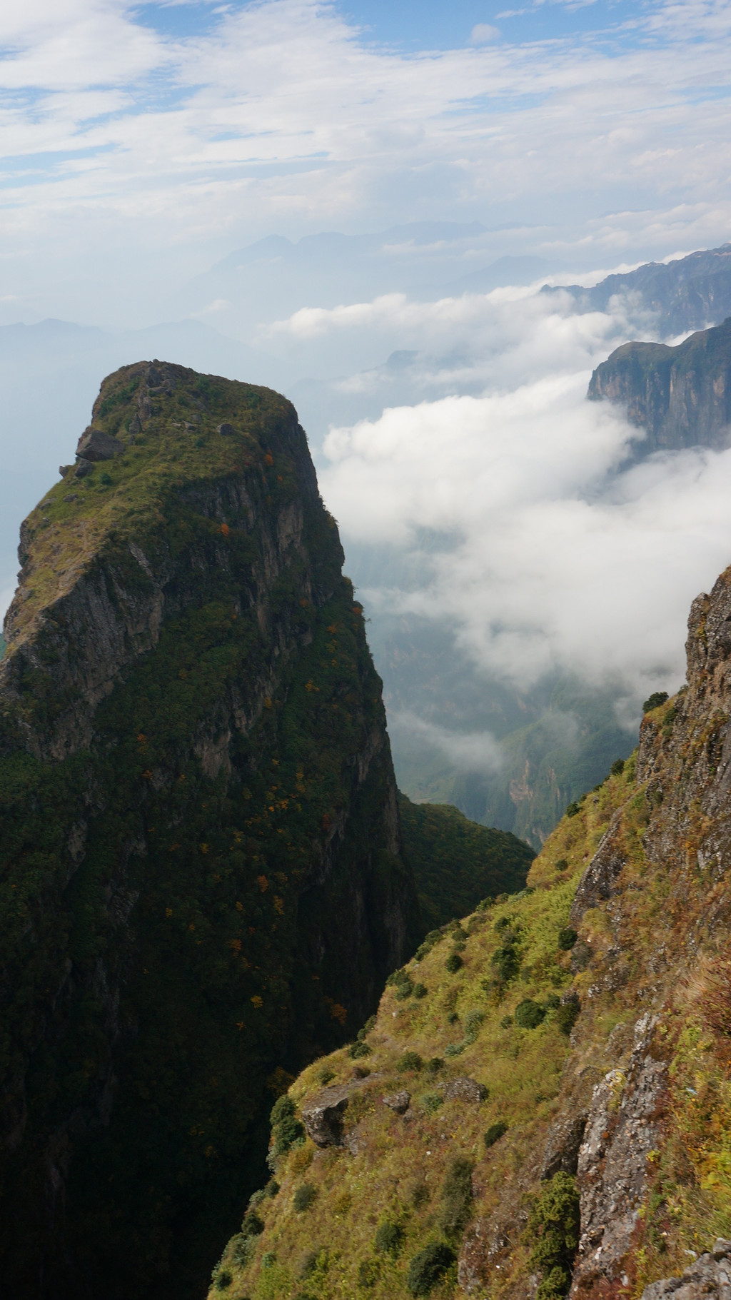 雄伟壮观的鸡公山,是观云海、看日落理想之地,但爬到鸡公山顶需要些体力更需要勇气,至少我在那里逗留的几十分钟期间,没有一个人敢去冒此风险。