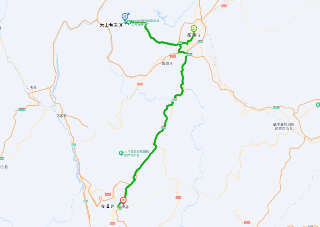 实际行程:昭通市→大山包景区→会泽县城,行车里程:246.6公里。