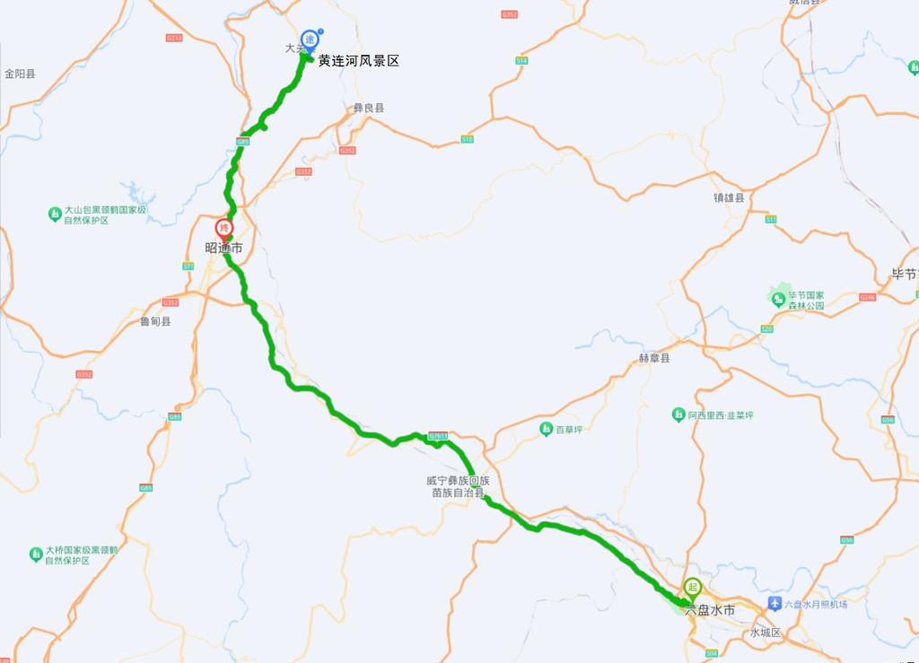 原计划:六盘水市→梅花山→黄连河风景区→豆沙关古镇→盐津县城。实际行程与之有较大的变化。