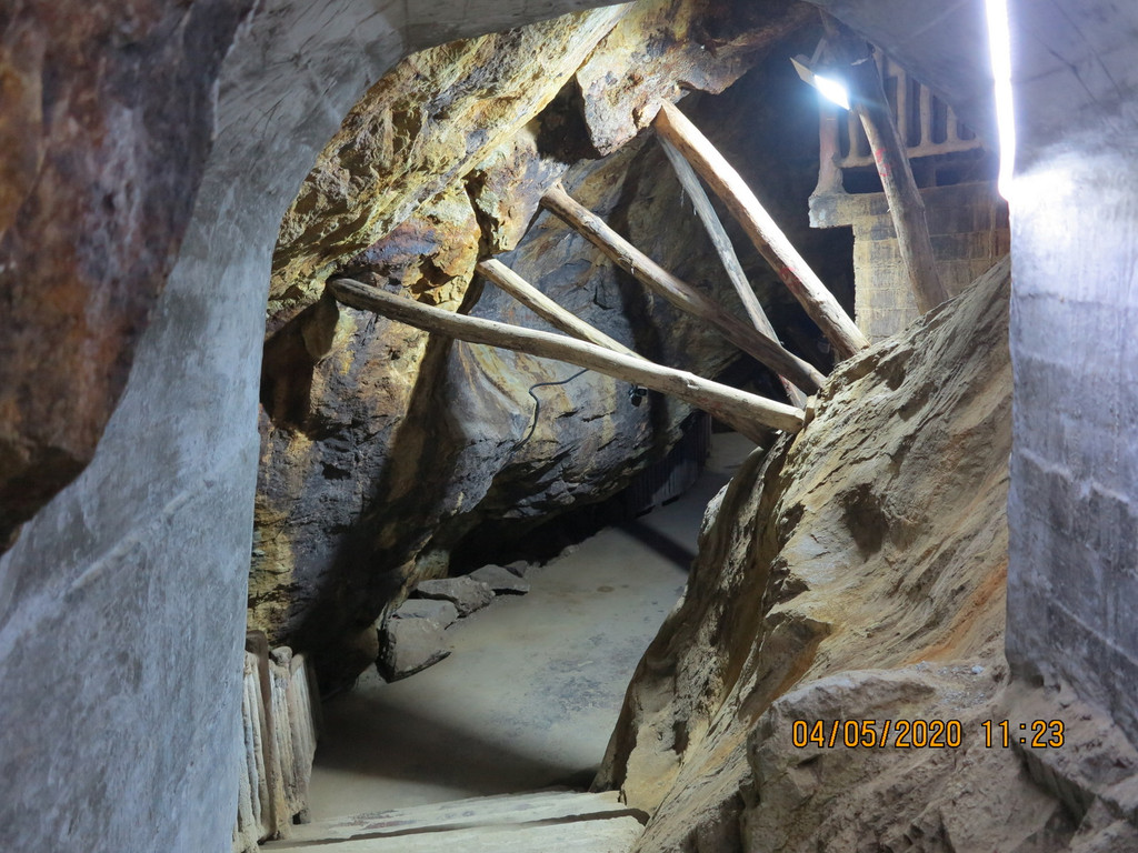 这里主隧道是后来修的,加了不少现代元素,金矿明代遗址长度有二三百米,和现代采矿去相联,深度达到五百米,非常牛。