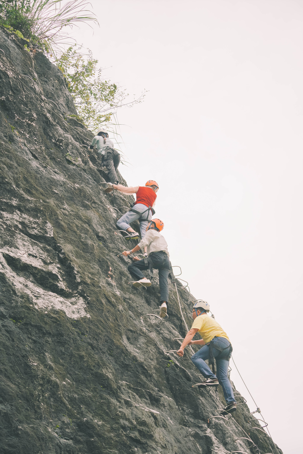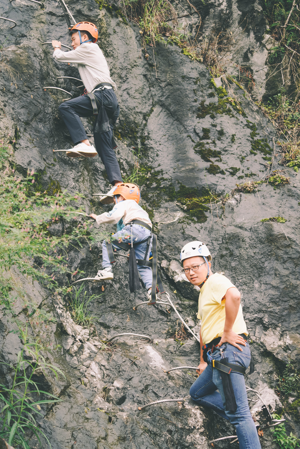 几个真的勇士,就这么徒手攀爬,驰骋悬崖,在岩壁上形成一条流动的彩虹线。