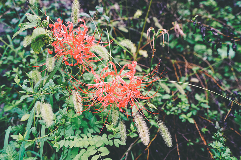 漫步景区,路边绽放着彼岸花、雏菊等各种野花,雨后空气新鲜,徒步山中小径,心旷神怡。