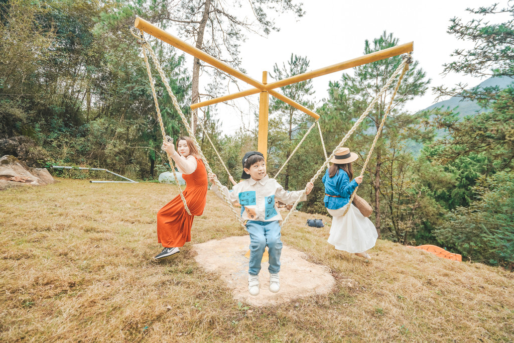 秋千吊床适合合家欢,可以同时容纳四个人荡秋千,一摇一晃中我们的欢笑声在树林中回荡,这一刻,我们无疑,已经拥抱了真正的童话世界。