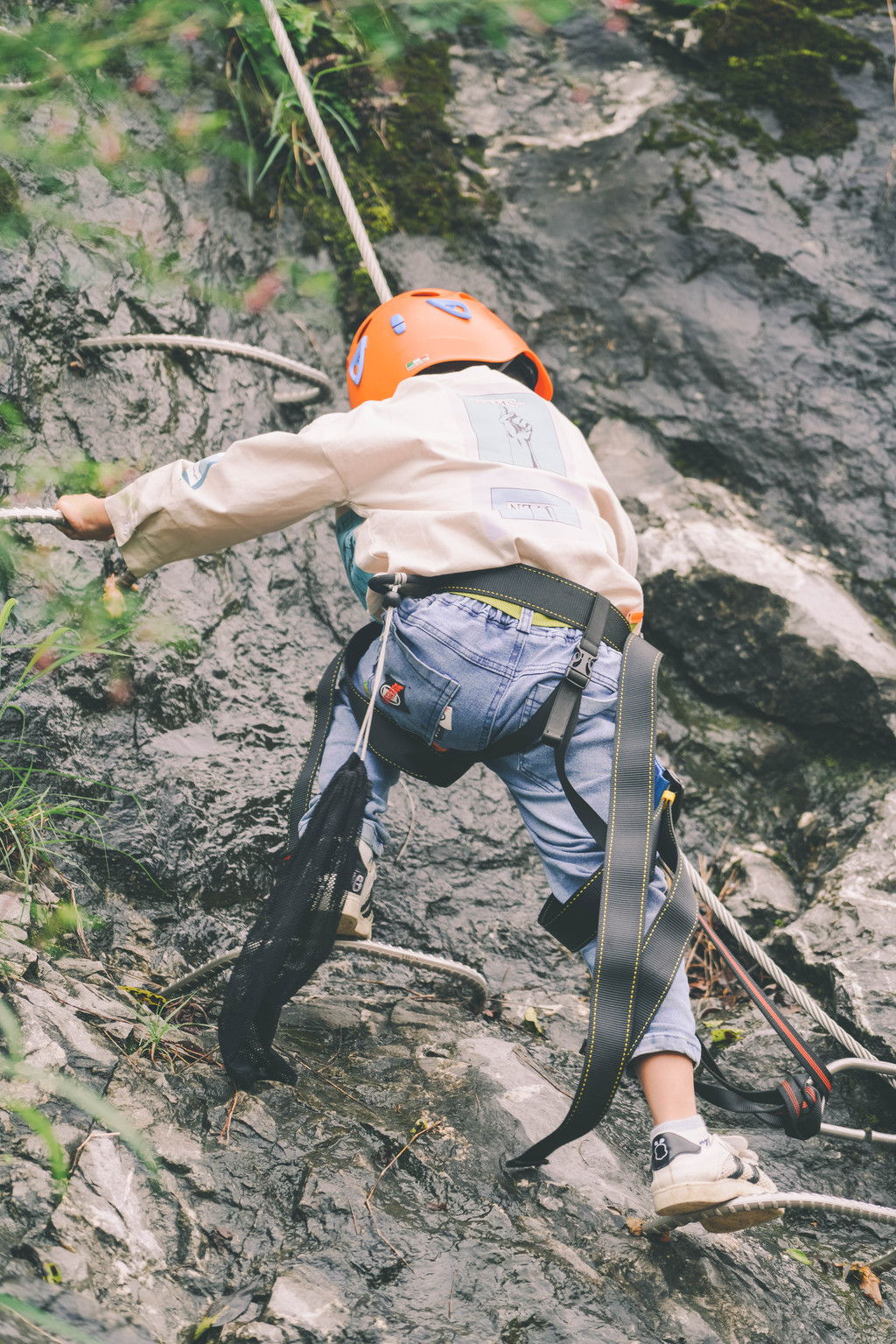 起先还担心元宝会不会怕,结果是我想多了,元宝迅速掌握了攀岩要点,噌噌噌一个劲的往上爬,瞬间就快登顶,让一旁负责拍照的我瞠目结舌,第一次攀岩的元宝,当真是潜力无穷。