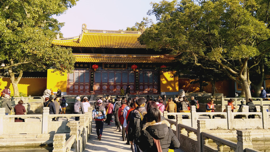 第二天我们先乘交通车去了普济寺,这是普陀山上人气最旺、面积最大的寺庙,里面挤满了人。