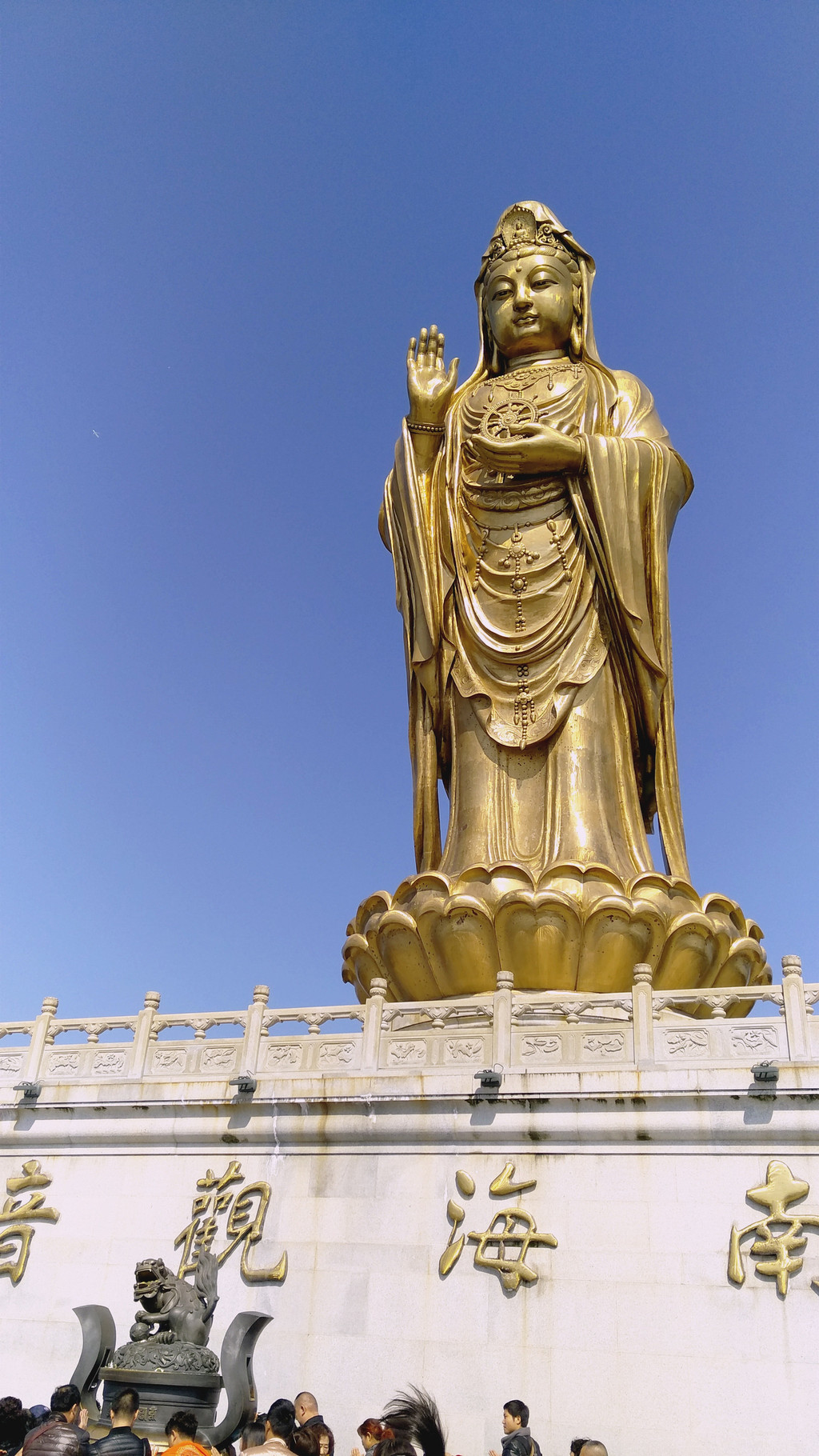 我们从那里去看了南海观音立像。南海观音铜像高33米,重70余吨,是普陀山的标志性建筑,也是海天佛国的象征,当今观音铜像之最。