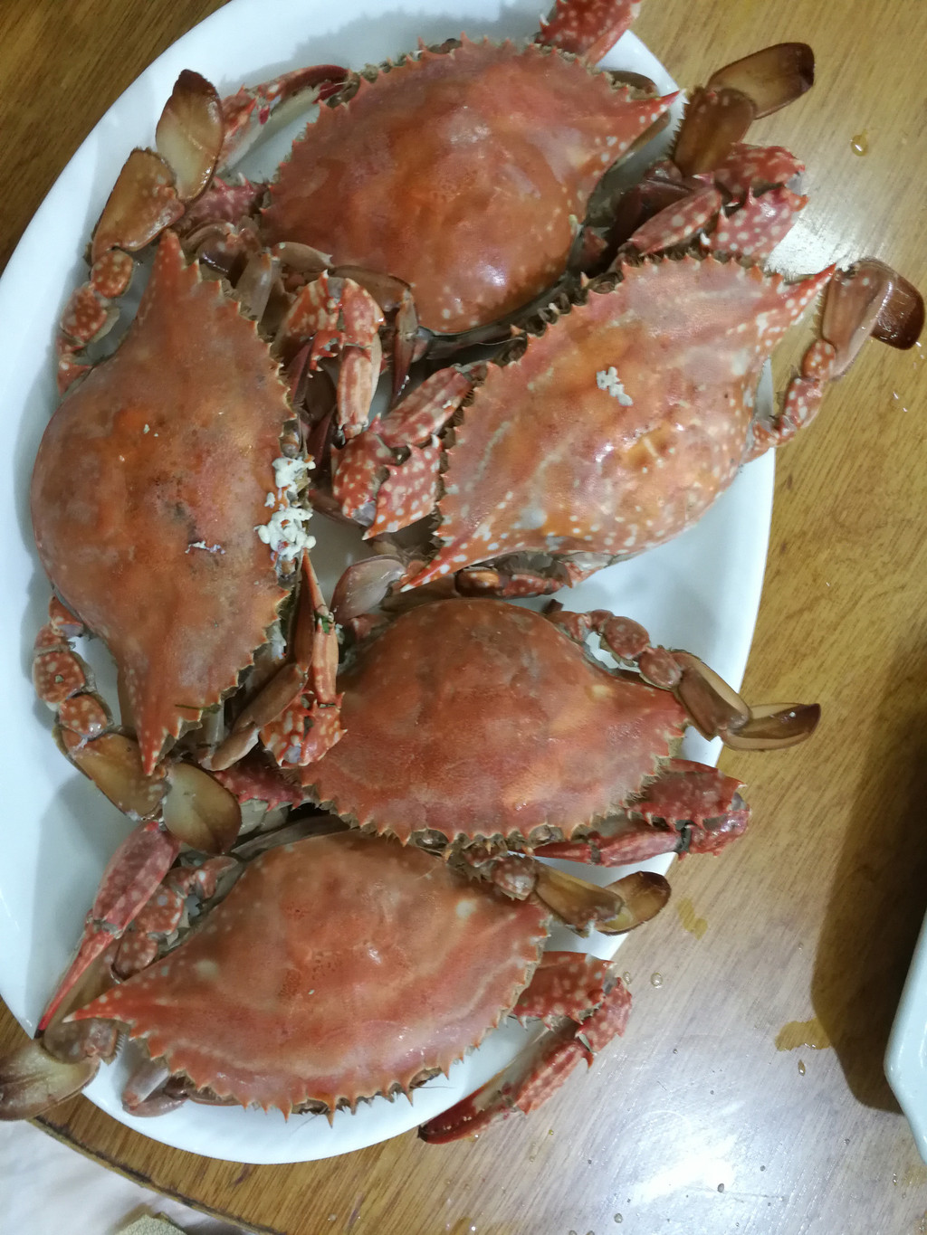舟山的海产品很多、很有名,我们顺路在沈家门市场买了几只梭子蟹,准备到住处加工。谁想晚上登岛后,入住的民宿刚被通知禁止给旅客做饭。黑灯瞎火加上人生地不熟的,转了好一会儿才找到一个饭店,可算吃上了晚饭。一吃上螃蟹心中不快一扫而光,这螃蟹又肥又鲜,太好吃了。