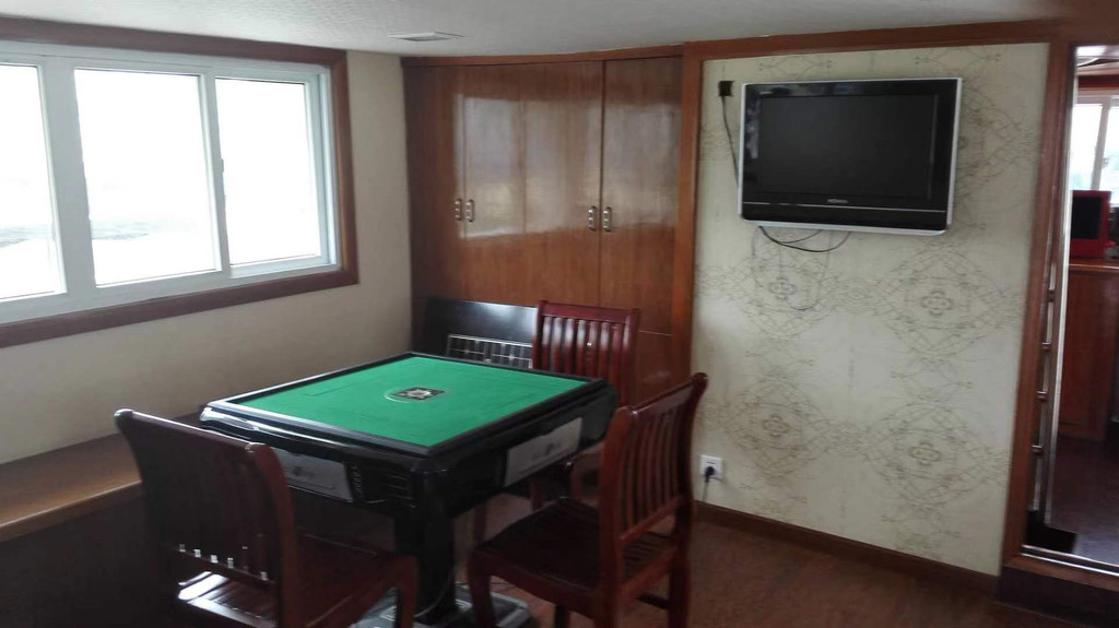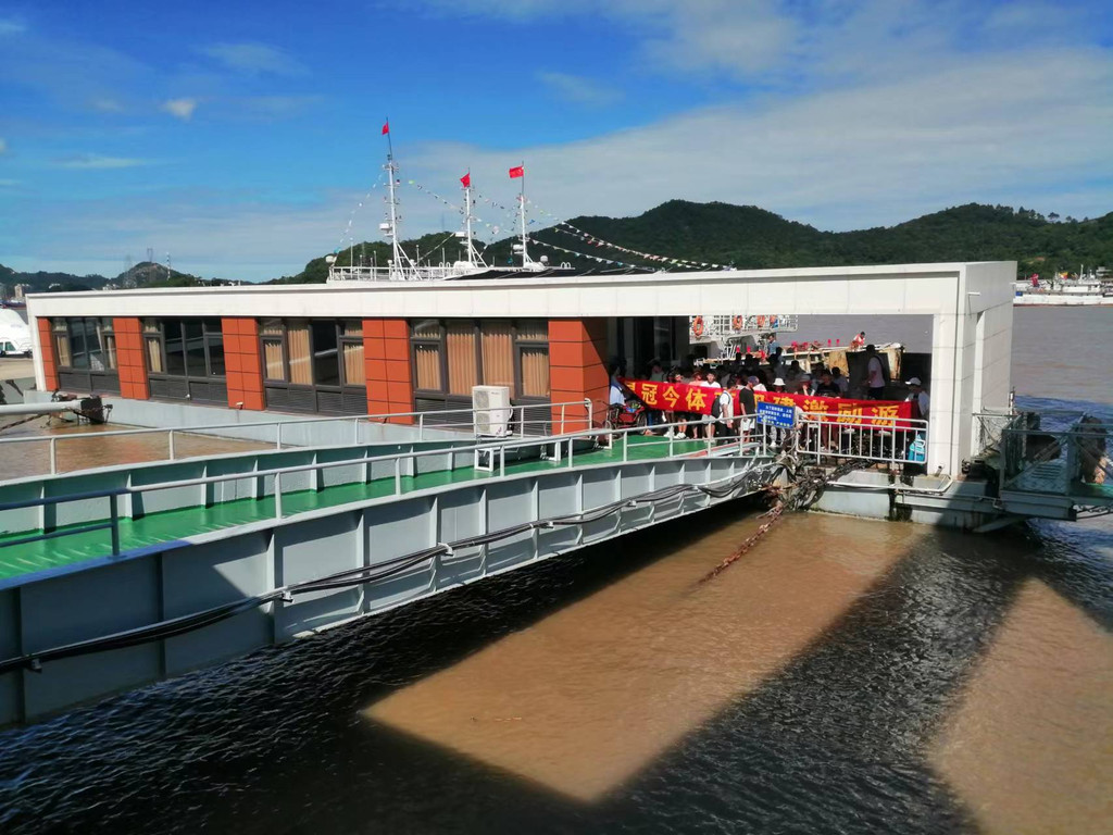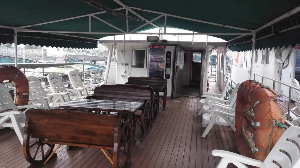 我们一行八人根据导航,来到了石浦渔文化展示馆对面的海岛休闲渔业有限公司。首先映入眼帘的是干净整洁的码头,并没有那些所谓的鱼腥味,接着看到六艘停泊在岸边的白色双层大型游船,马上给我和朋友们留下了好印象。登上游船参观后,可见船上的设施也是非常得丰富齐全,有棋牌室、麻将室、休息区以及KTV房等等。