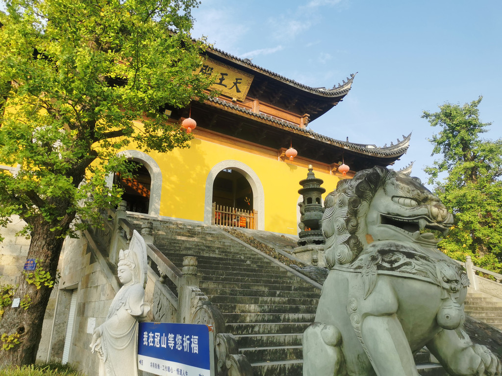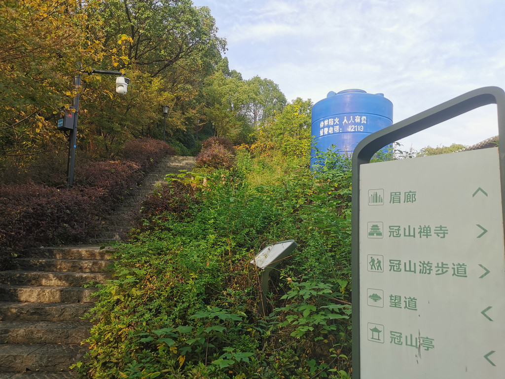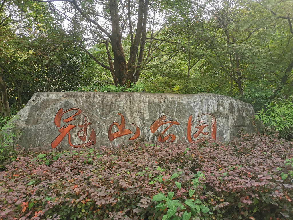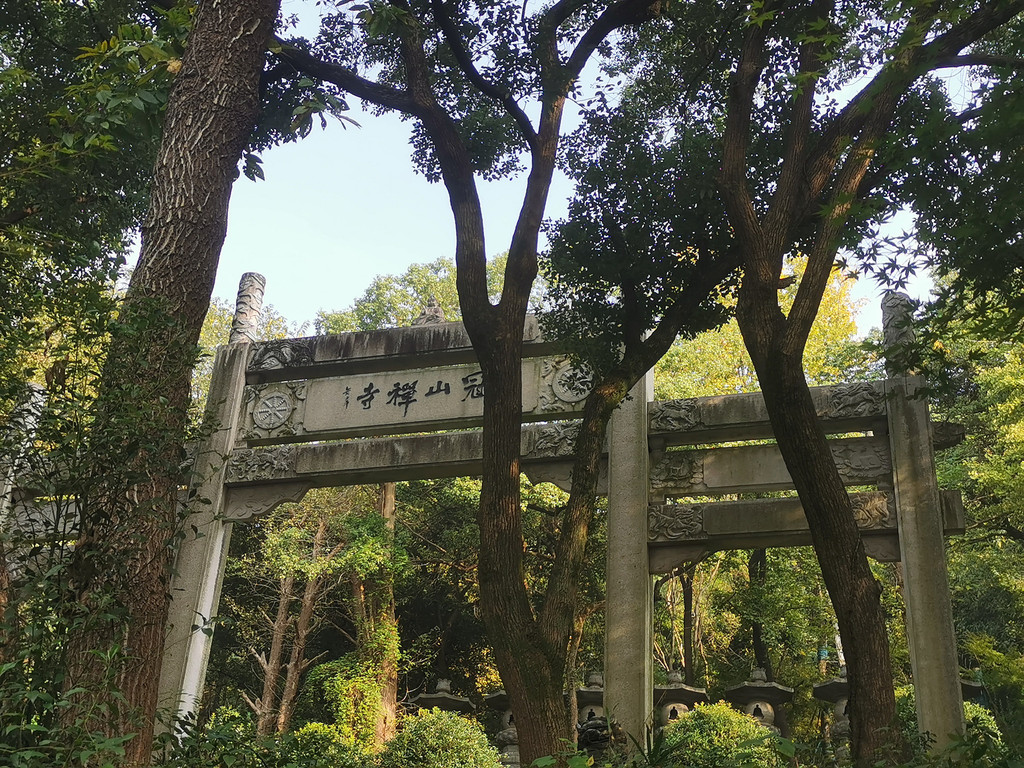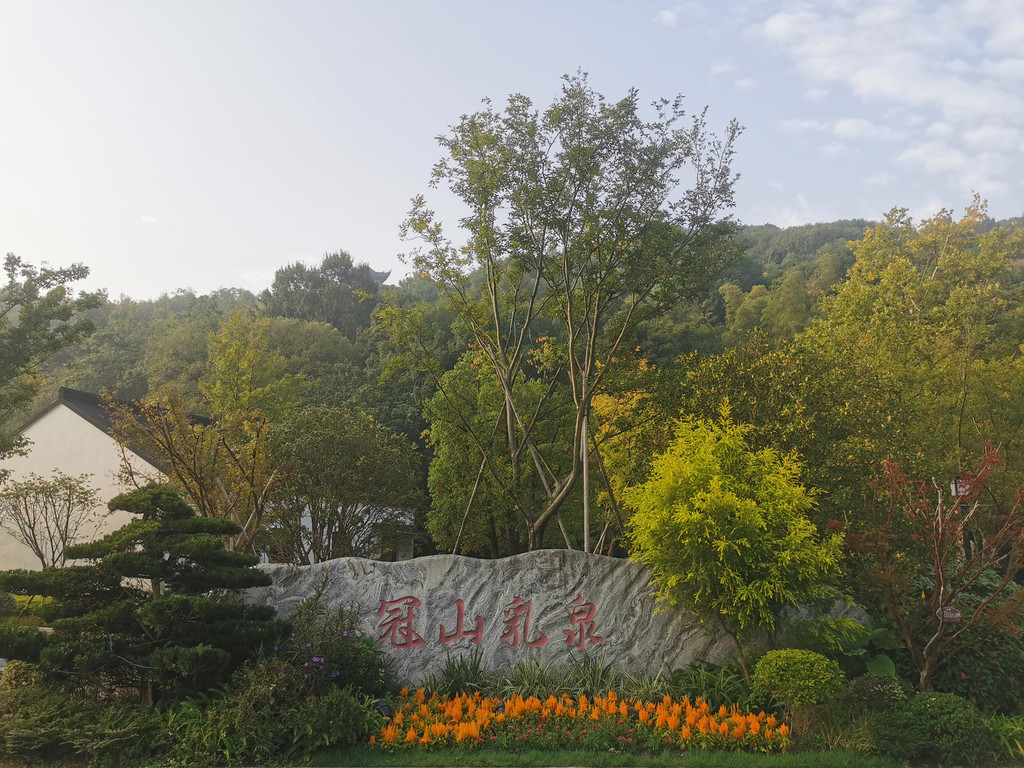 冠山位于萧山,现在属滨江区;冠山寺最早源于南宋,名西隐庵,后扩建改名云岩寺。冠山下乳泉传说是南宋皇室饮用泉源,附近乳泉山房入内才晓得是关帝庙。山道上行不远就到冠山寺,寺内茶水房旁崖壁上有萧山仅存的摩崖石刻。金秋桂花时节,寺院内暗香浮动;间有一对联:水落花发春秋浓淡总非真、峰定云飞朝暮烟霞俱是幻。寺后山脊望道北瞰是萧山、杭州主城区繁华,隐约可见钱塘江,下面就是时代高架路籍冠山隧道穿越畅通南北。