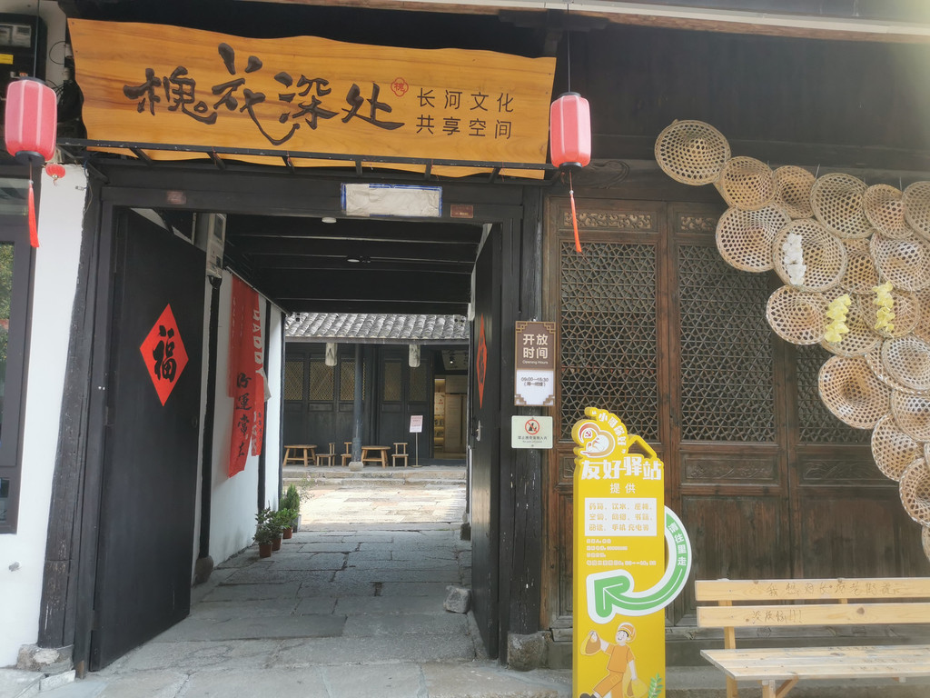 长河老街距离冠山不远,比乌镇、西塘等远显安静的古镇老街,也有着更多的生活气息。沿河街巷,泽街、槐街南北、东西走向、纵横交错;街区里零星散落着高墙深院的老宅,更多是老旧的小屋改造成了咖啡馆、茶馆、书吧、小酒吧…看了展陈知道长河来氏是这一方的名门望族,忽然想起很久前还是没有手机的那个年代认识的一位萧山小伙伴,就是来姓,当时觉得稀奇,原来却是这边的大姓;由此一斑而见我泱泱中华之广阔博大…