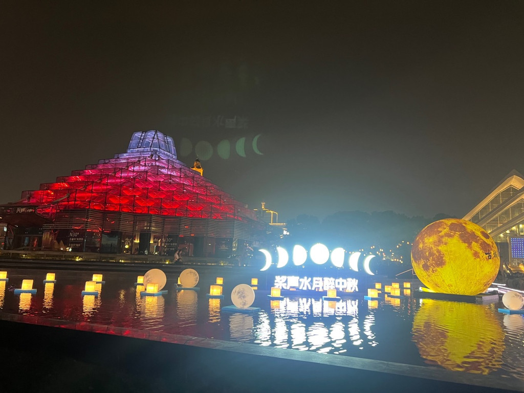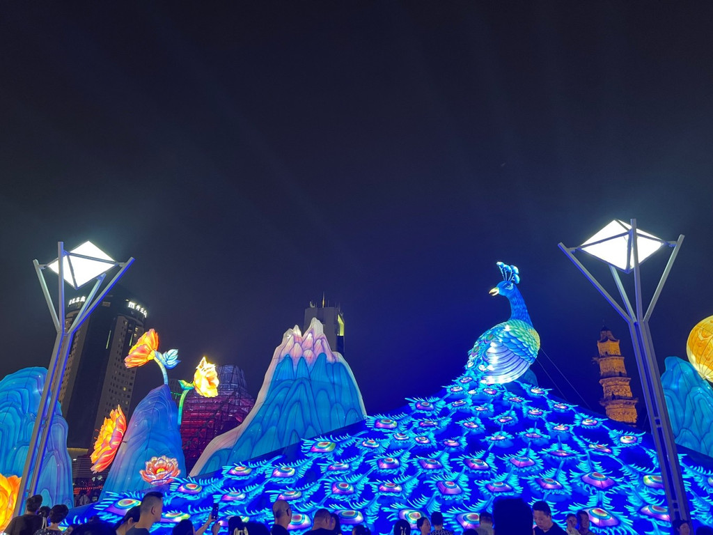 吃完饭,我们步行到八字桥,然后从八字桥走到城市广场,那边好像有演出,很多人。