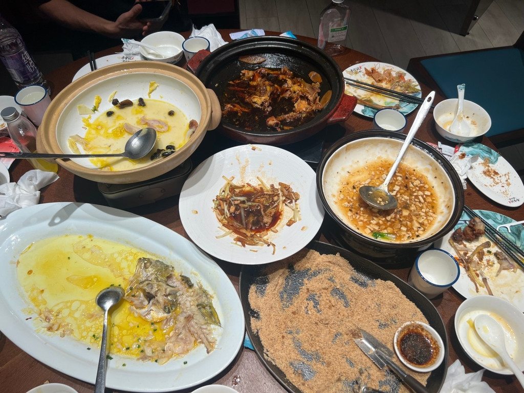 坐船也要排队,这边差不多排了45-50分钟。我们坐完船就1点半多了,打算去鲁迅故里(百草园),好家伙,这个时间那个队伍排的......又赶上我们都饿了,算了,放弃!在附近找了一家醉越宴解决午饭,也是绍兴菜,也很有特色,跟昨天吃的寻宝记菜色差不多,但我们更喜欢寻宝记。