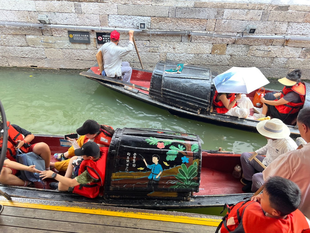 这时候去三味书屋排队已经很长了,我们就先去了鲁迅纪念馆,那边人还不算多。从纪念馆出来,去排三味书屋的队....排了差不多半小时,才进入到书屋内部。从三味书屋出来,我们想去体验一下绍兴有名的乌篷船,往返是100一个船,最多能坐3人,时间就10来分钟。