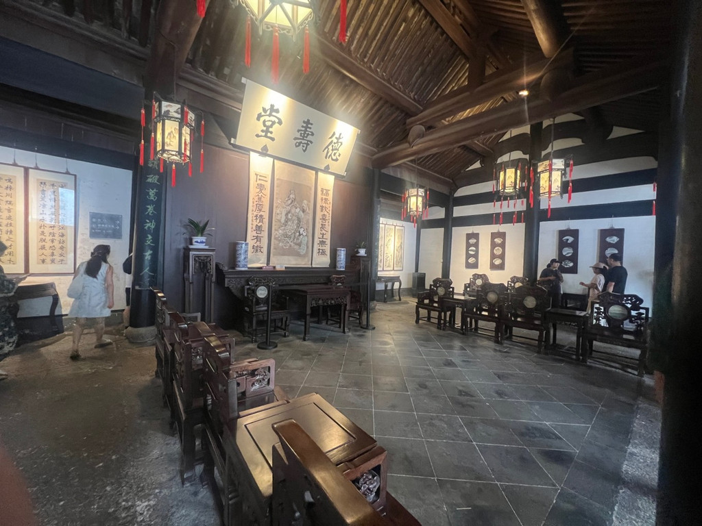 这照片是出来以后拍的,已经人山人海了,进祖居也排了很长的队。有人工讲解,但讲解员很少,需要等,我们就从旁边的机器上租的电子讲解器,30一台,能讲解故居、三味书屋、鲁迅纪念馆等这几个地方。从祖居出来,实在热的不行,就在门口小店买了几把扇子,真的非常有用!!
