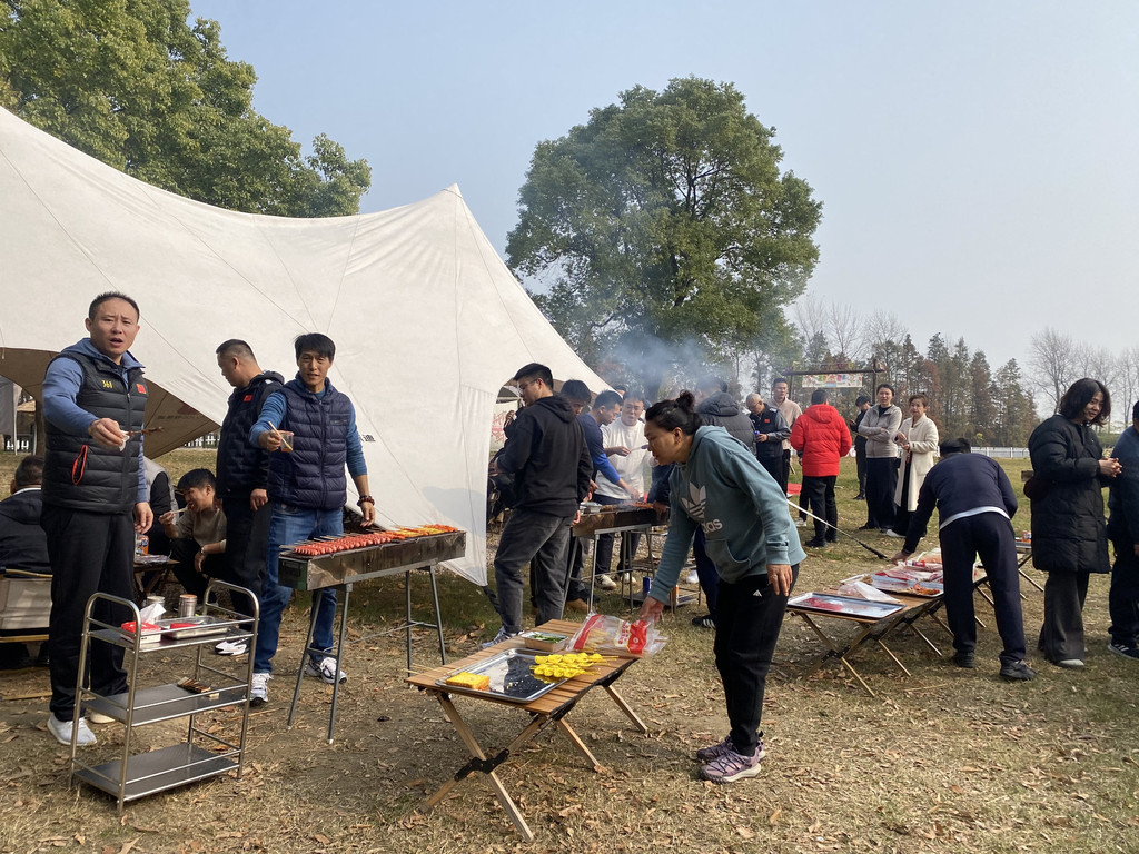 天幕、灯串亮起来后氛围感很不错,非常适合团建的收尾阶段。