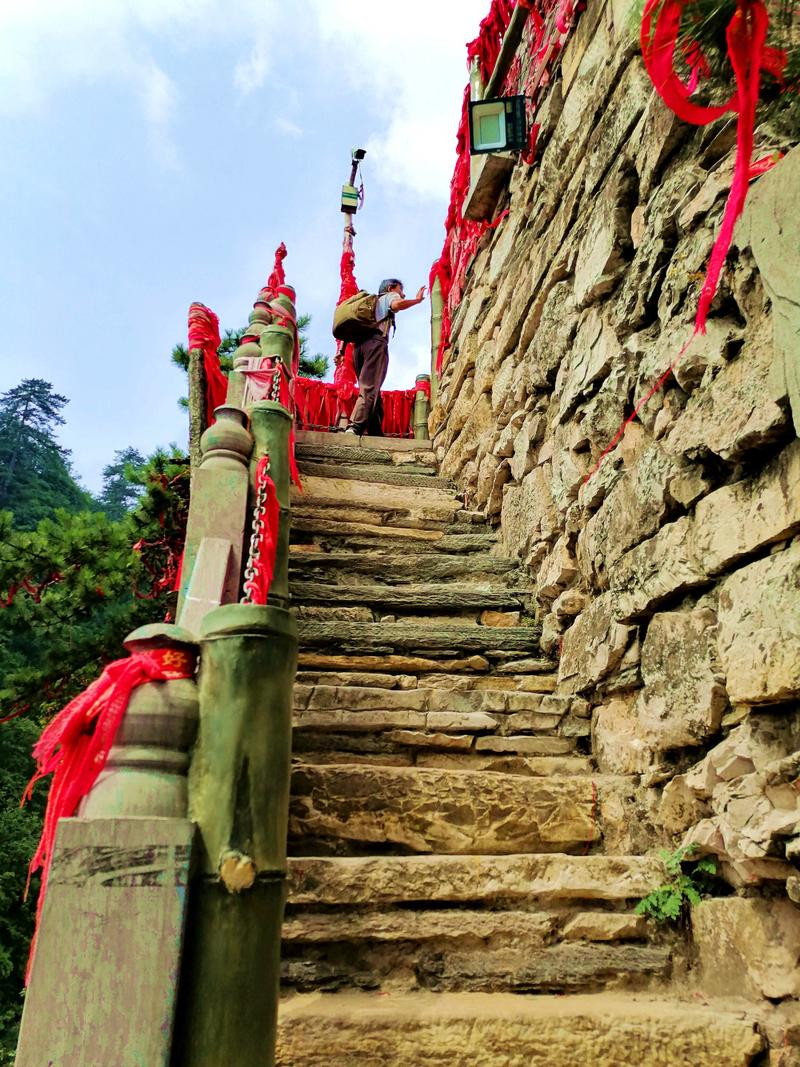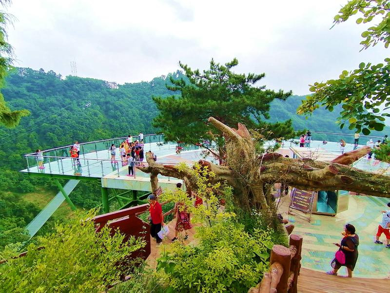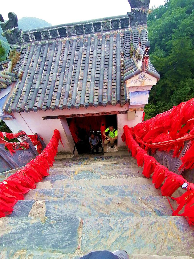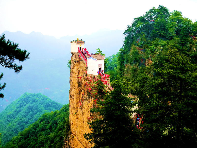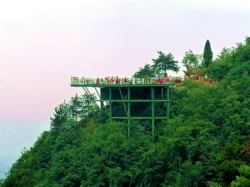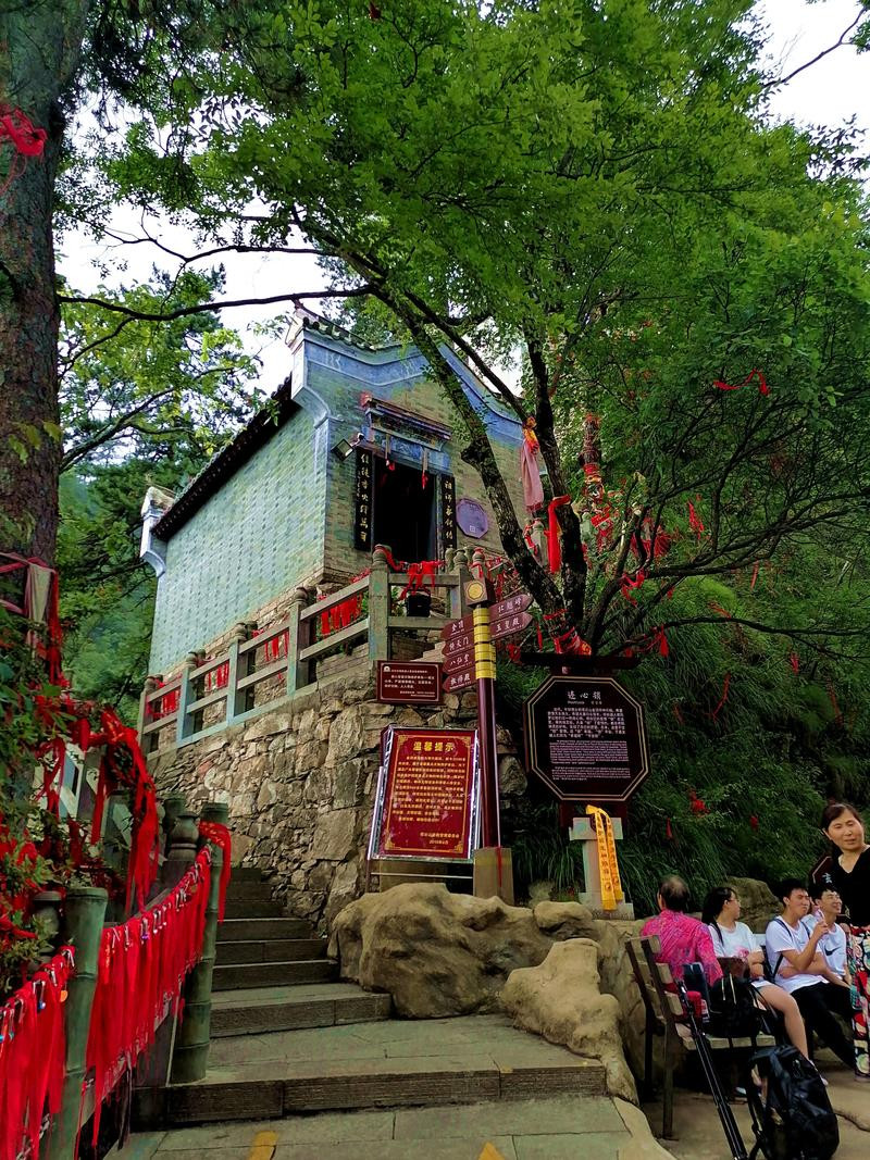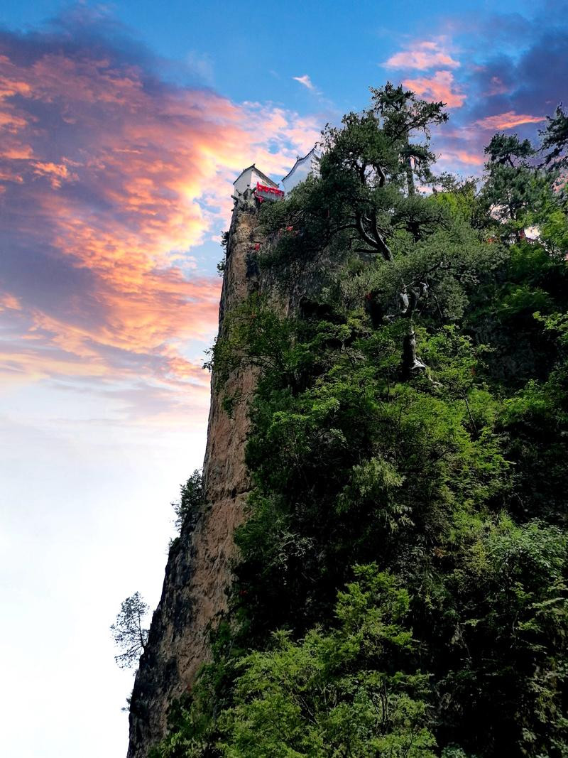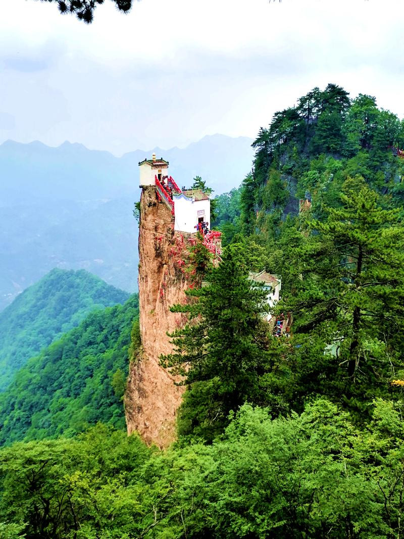 "金顶旋转在九霄,脚踩飞云魂飘渺。果是人间一仙界,天宫胜景独这好。"这昔日志士名人咏诗赞誉的,就是位于镇安县之西的柴坪镇安坪村的塔云山奇观。塔云山,又名讨儿山,海拔1665.8米,邑人进士晏安澜改今名。由一馆、一堂、一庙、一塔、九殿组成,始建 于明万历二十五年(公元1597年),清代和民国皆有增修。塔云山的第一景是塔云仙馆。5间正堂,两层楼阁,是专为上山进香和游客设置的食宿之所,可容纳500余人。我选择参加从西安出发塔云山一日游。每人105元,包括一顿饭。这是客服中心免费领取的导游图。这是索道票,上下50元,单趟30元。这是塔云山山门。介绍说: 金顶金鸡独立,奇绝天下;它的神奇与奇妙,堪比埃及的金字塔。金顶支架在4根巨大人凿青石之上,但4个支撑金顶的长青石,究竟从何而来呢?又是如何运到这万仞绝顶之上的呢,是天造神设,还是人力所为?天造神设过于虚幻,人力搬运又不大可能,于是,在塔云山,就形成了众说纷纭的神奇传说,更形成了一个等待破解的千古之谜。塔云山是驰名秦、鄂、川、豫等地的道教名山,形似宝塔,直耸云端,素有"金顶刺青天,松海云雾间"之美誉。其道教古建筑群建于明正德年间(1505-1521),由一馆、一塔、一庙、一堂、九殿组成,风格古朴而清雅。塔云山以险绝、奇特、秀美、壮观、神异而著称,不仅具有厚重久远的 道教文化 ,而且拥有绚丽多彩的自然风光。这里是省级二级文物保护单位。在2011年度中国最美潜力景区评选活动中,塔云山景区当选中国最具潜力的十大道教名山。中国道教协会会长任发融题词高度评价塔云山:"秦岭第一仙境,天下最险道观"。2015年12月,塔云山景区入选国家AAAA级旅游景区。这是景区车终点站,下了景区车。我们立刻乘坐索道上山。这是碑林。道字石。然后立刻爬金顶,参观观音寺。秦岭姿态万千,雄奇壮美。在它恢弘律动的篇章里,最为灿烂的典章,最为奇崛的"画龙点睛"之笔,则是位于镇安县境内的塔云山。镇安位于长江上游,坐落秦岭南麓,山川秀美,人杰地灵。从古都西安启程,仅用2小时,就到了风景如画的镇安县城。站立县城之巅,塔云山的雄姿在飘忽的云雾里,捉迷藏一般地若隐若现。顺石塔再向崖巅攀登,约1.0米的险厄处有一座面积不足2平方米的小庙。故命此庙为"舍尸殿"。从"舍尸殿"转身向右攀,又有一个山巅,山巅上有一座3间两楼的殿堂,名曰"一殿门",又叫"化钱炉",殿门匾楷书"天外云峰"4个大字。登塔云观奇景,绝妙处在金顶。金顶就是观音殿。这座不足六平方米的小庙,建筑十分险厄。它居于塔云山顶,三面悬于万丈深渊,是用四根石柱插入石缝,用石条铺垫立基,庙顶用黄铜铸尖。黄铜顶经阳光照耀,闪烁出万道金光,故有金顶之说。这座观音庙有四根翘角飞檐,每根翘檐各挂21斤重的铜铃一颗。铜铃随风舞动,发射出有节奏的音韵,在万丈悬崖之上,听到这叮叮当当的铃声,更增添了空中楼阁的雅静。庙门首是一条石雕青龙,青龙活灵活现欲腾飞起舞,其工艺精湛堪称一绝。庙门额横匾石刻"塔云山"三字;石雕楹联是"树长菩提荫庇人天百岁;花开覆钵香荡世界三千。"游人登上金顶,有畅游天宫般的享受。上到这里是有限流的,一次只能上去10人。每下来一个上去一个,因此我们是早上第一个上去的,才可以拍到这样的照片。传说,世有观音,能超众生,而凡有所求者,必先在"化钱炉"祈祷、净身、洁心,然后才能到观音庙许愿还愿。因此,殿门香火甚盛。其门联石刻首"元都百二河山凝瑞色;圣地三千客阙起祥光。"朋友在下面等候。等待我们下来,别人才能上去。塔云山从秦岭的千万座山峰里脱颖而出,金鸡独立,它有着"一览众山小"的孤傲,有着"直插云霄"的挺拔,有着大力士的矫健和雄阔,又有着大家闺秀的妩媚和多姿。它的特质,可以用5个字来概括,那就是"险、奇、秀、峻、神"。秦楚一柱,绝顶道观。塔云山的金顶观音殿,翘首于万仞绝壁之上,三面悬于万丈深渊,仰望壁岩,宛如刀削斧劈;俯视沟壑,仿佛深不见底。站在金顶之巅,恍惚的云轻拂面庞,迷乱的风时而晃动松林,人仿佛置身于虚无飘渺的仙境。古松在石缝里茁壮,山花在山崖间绽放,鸟儿在枝头翩跹歌唱,清泉在峡谷里潺潺流淌。滴水崖常年滴水如注,在生生不息的传说里,显得格外楚楚动人。千奇百怪的石头,造型各异,神态可掬。蜡烛石不但形神兼备,更凝结着一个感人的励志故事。传说镇安籍进士晏安澜在这里刻苦学习,不觉夜幕降临。正在他起身寻找光亮之时,忽见一根巨型蜡烛在山上熠熠生辉。他在蜡烛之下捧书阅读,至天亮才发现,原来这根蜡烛是一根石柱。晏安澜后来中榜,官至京城盐政官,后人因此称这块石头为"蜡烛石"。塔云山的树木古老而葱茏,绿如波涛,随山的起伏而起伏,随山的幽深而幽深,随季节的轮回而变化,随天气的阴晴而转换表情。奇妙的树木,或笔直如岗哨,或散漫如懒汉,或如困乏者躺卧在地,或似偷情者急不可待旁若无人的相拥相抱。登塔云观奇景,绝妙处在金顶。金顶就是观音殿。这座不足6平方米的小庙,建筑十分险厄。 它居于塔云山顶,三面悬于万丈深渊,是用4根石柱插入石缝,用石条铺垫立基,庙顶用黄铜铸造。 黄铜顶经阳光照耀,闪烁出万道金光,故有金顶之说。"金顶刺青天,松海云雾间"。塔云山如同一支刺向天宇的利剑,划破重重云层,而南翅峰、北翅峰和香炉峰等诸多山峰,簇拥而立;它们相互牵
