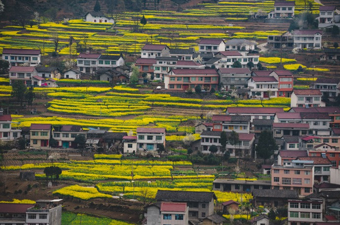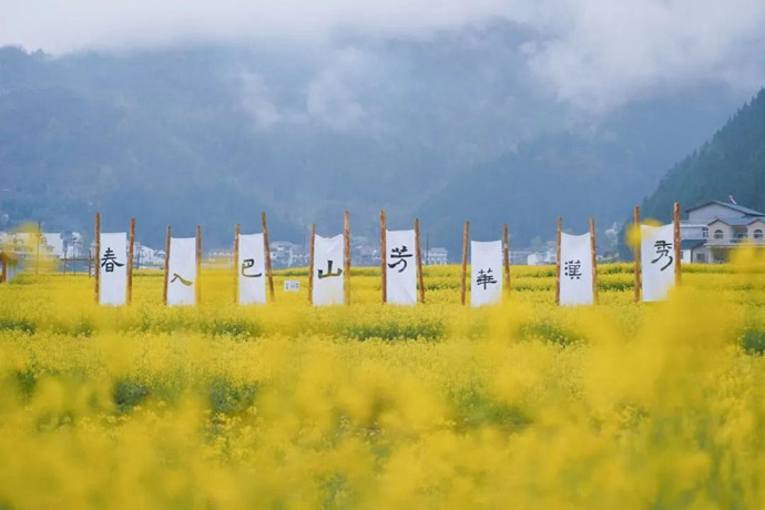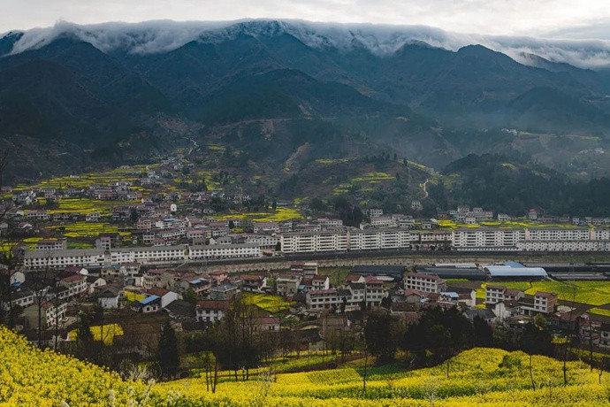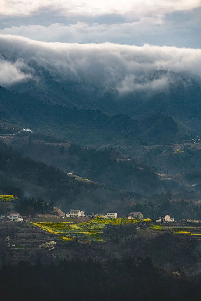 巴山重镇渔渡距今有近1800年的历史,平坦的坝子和特殊的喀斯特地质巴山山脉交错存在,与金黄的油菜花、古朴的村庄,共同塑造渔渡瑰丽而美好的田园风光。