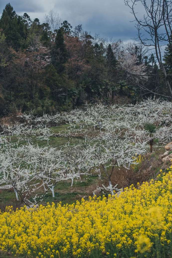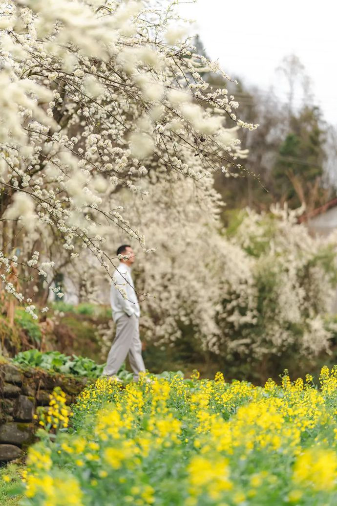 昔日花果村如今已变了模样,人们在山间开发出连绵的青脆李果园,此时李花盛开,青山仿佛被加上了天然滤镜,像极了宫崎骏画笔下的场景,清新又治愈。