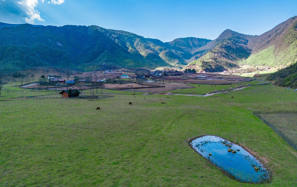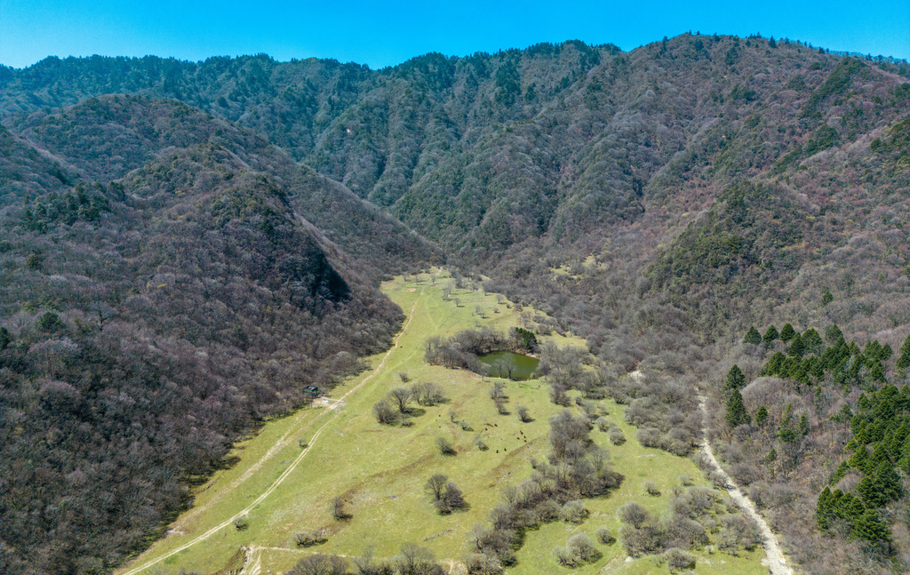 位于镇巴县三元镇的天坑群,包括了天悬天坑、倒洞和圈子崖天坑等众多景观,其中以天悬天坑也就是著名的心形天坑最为震撼,其最大坑深高达183米,洞内还有洁白的冰凌,利用航拍器降到洞底后看到的景色极为震撼。除此之外,天坑旁边还有一片漂亮的草甸,这里居住着几户村民,家家都养着一些牛羊马,每天自由自在的生活在草地上,与远处的群山相互印衬之下,真的就像是到了新疆一般~