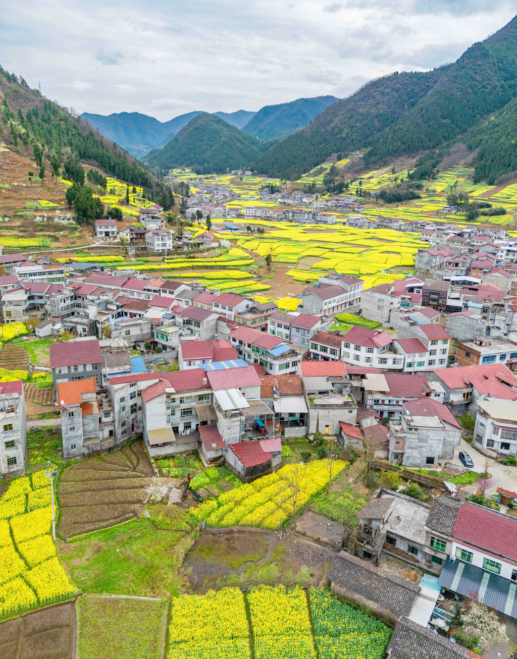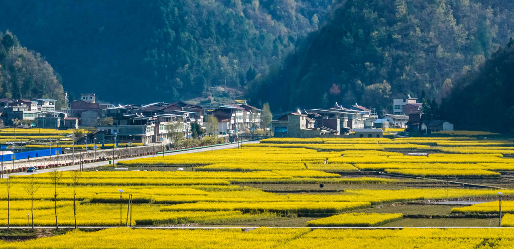 当然,最美的时候就是油菜花季,此时村里村外的空地上都种满了漂亮的油菜花,花海前后又有一排排地方特色民居,映衬着半山绿波荡漾的竹海山林,好一幅色调明快的巴山春景图,真的是美不胜收,值得你专程为它而来~
