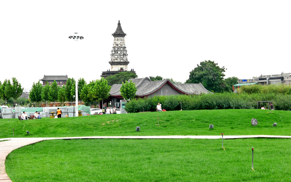 15:22走出临济寺,外面是一大片绿油油的草地,这在北方城市中颇为罕见,大草地的尽头耸立一座漂亮宝塔,它就是广惠寺的“华塔”。15:37走入广惠寺,这里也是遗址公园,免费对游人开放。“广惠寺”也属正定古时八大寺院之一,始建于唐贞元年间(公元785—804),距今1200余年。寺院兴盛时期自南而北依次有天王殿、前殿、华塔、地藏殿等建筑,清末寺院废毁,唯有“华塔”存留。