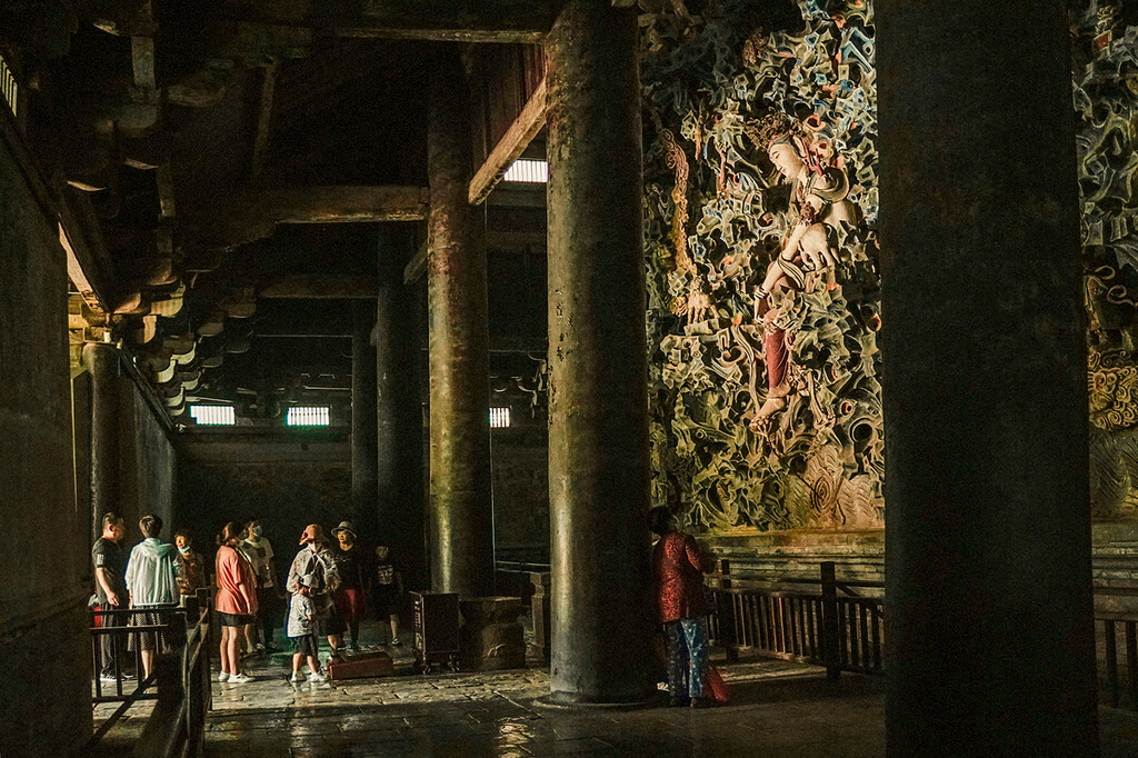 摩尼殿内的明代壁画为其二,整面壁画青红色交织,辅以沥粉贴金,佛陀、菩萨、罗汉等400余身,笔触细腻,面容栩栩如生,让人叹为观止。