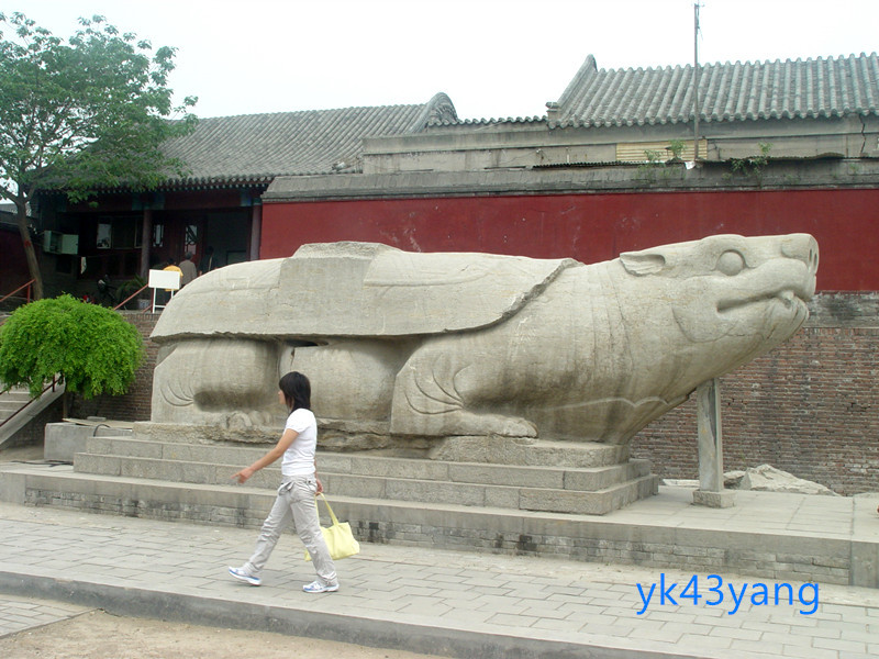 寺院内有一座巨大的驼碑石赑屃。长约8.3米,宽2.5米,高2.35米。还有一块巨碑残部和碑顶石雕。从这块碑顶来看,当初这块石碑之巨怕要创造基尼斯纪录了。
