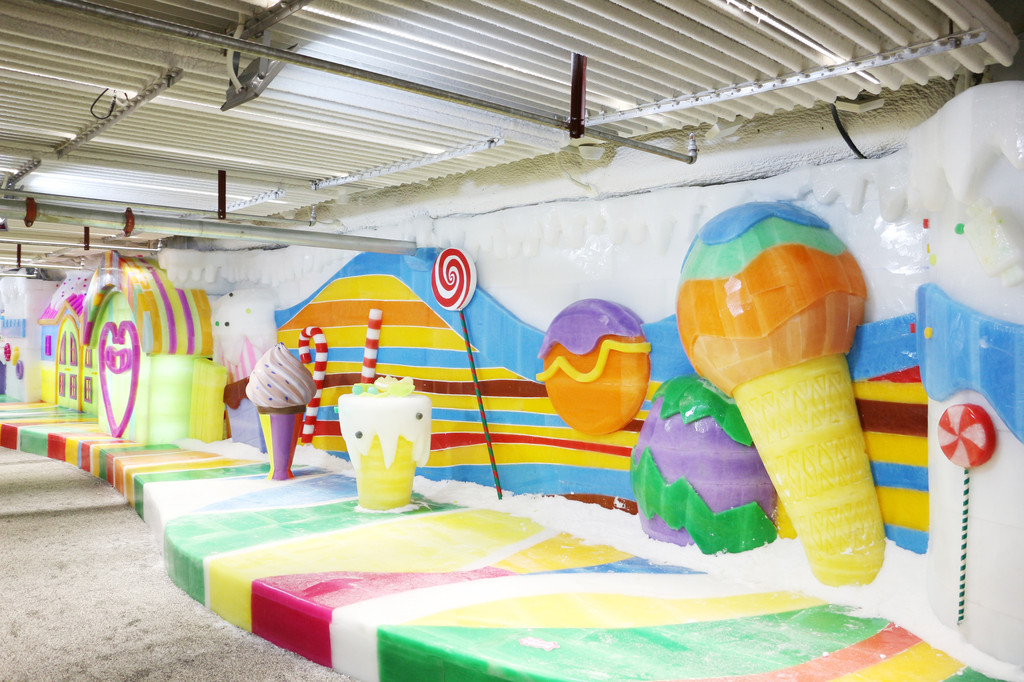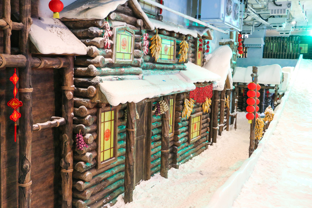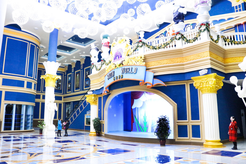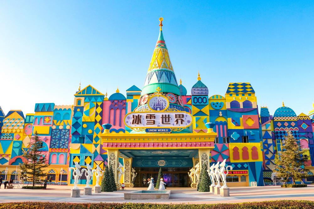 到了地方,首先映入眼帘的是冰雪世界的大门。伴随着轻松愉悦的音乐,五彩缤纷的建筑一下子就跳入我们的视线。