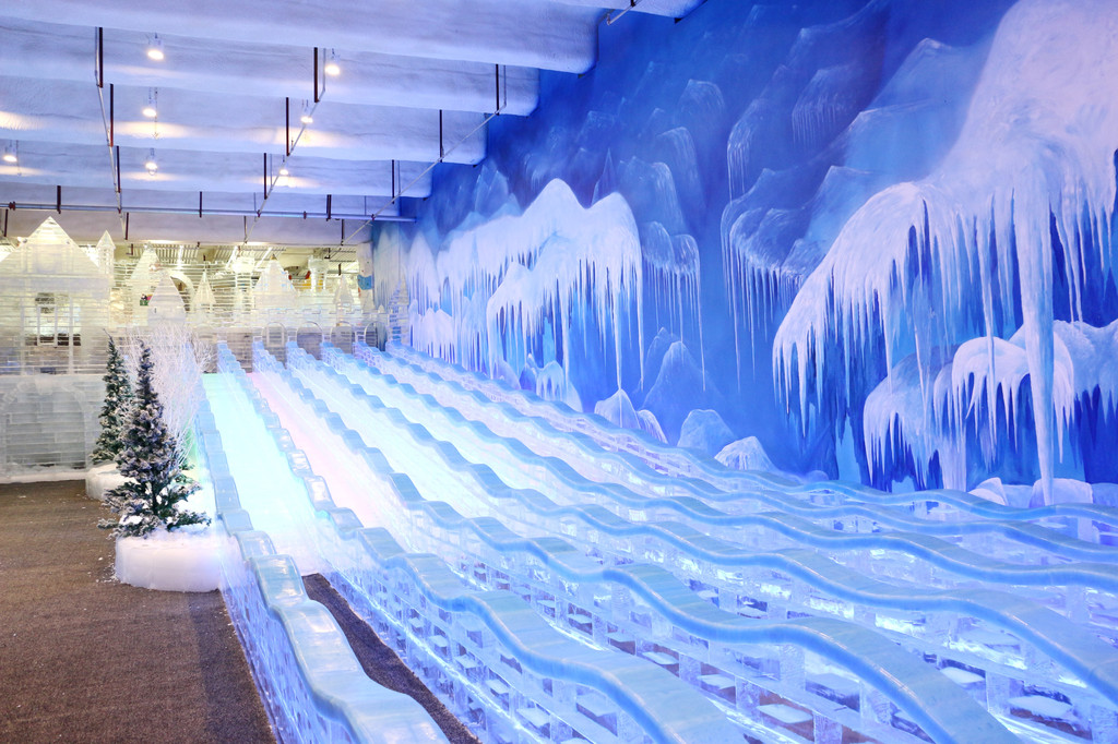 把二楼逛的差不过后,回到入闸机的地方,有通往一楼冰湖的电梯,乘坐电梯到了一楼,气温明显降低了很多。