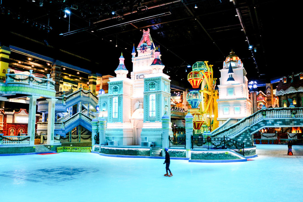 租用了冰刀鞋,还乘坐了狗拉雪橇车,狗狗们真的都超可爱,摩天轮和旋转木马适合小孩子玩,弹跳塔就比较刺激了。翡翠谷气温低至零下,真的好冷,不过很漂亮,有一些冰雕。还有很多适合带小朋友来玩的,有专门的儿童区,糖果区,还有绿色女王和白色女王的表演。
