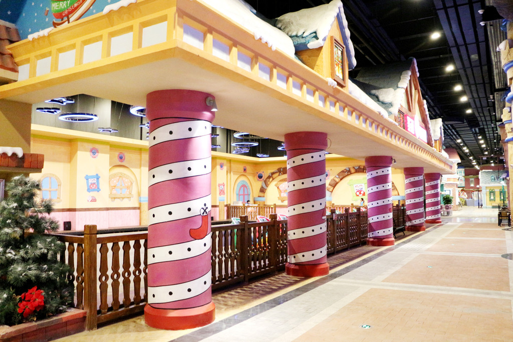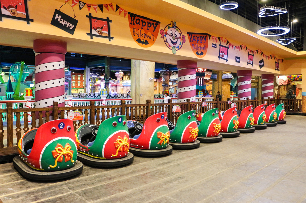 乘着左手边的电梯到了二楼,开始检票入闸机,进去以后就看到了非常漂亮的室内游乐设施,我们首先玩的是充满圣诞气息的圣诞碰碰靴。