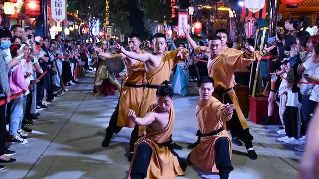 一路穿过雪月街,有剪纸铺、扇子铺、白居易酒铺、饼铺、面铺…仿佛瞬间穿越了千年,《穿越秀》也是在这条街上。