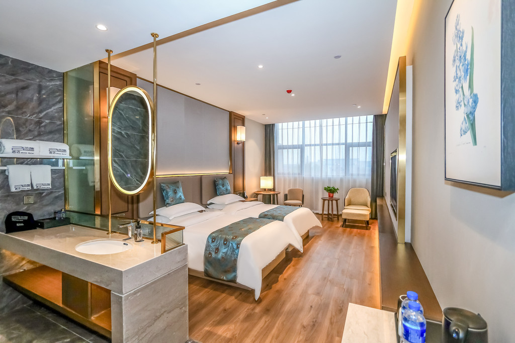 有点古风哈哈哈,不过这叫新中式装修,酒店也用了看起来很温馨舒适的黄灯设计。厕所和洗浴是分开两边,不是拼接的,这次让我喜欢的不是厕所的设计,是房间整体的设计。两张大床,可以睡四个人的那种!要是四个人旅游出行双床房完全可以满足需求了。