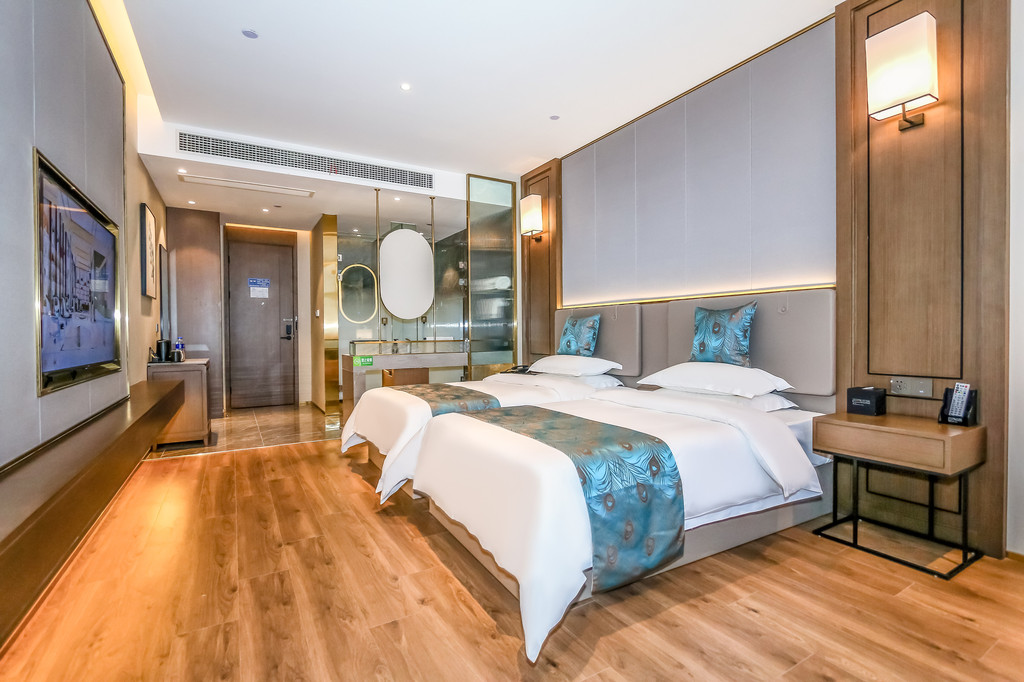 房间内配置乳胶层床垫、鸭绒枕与乳胶枕可选,配备靠背,60*60纯棉床上用品,安全舒适;超大55寸高清网络电视,给您视觉享受,VIFI一键认证,高速安全;洗漱间配备沐浴、洗发、护发牙具、剃须刀、护理包等高端用品,恒温负离子护发吹风机,高速不伤发质;淋浴热水47度出水量,消除您一路疲劳。
