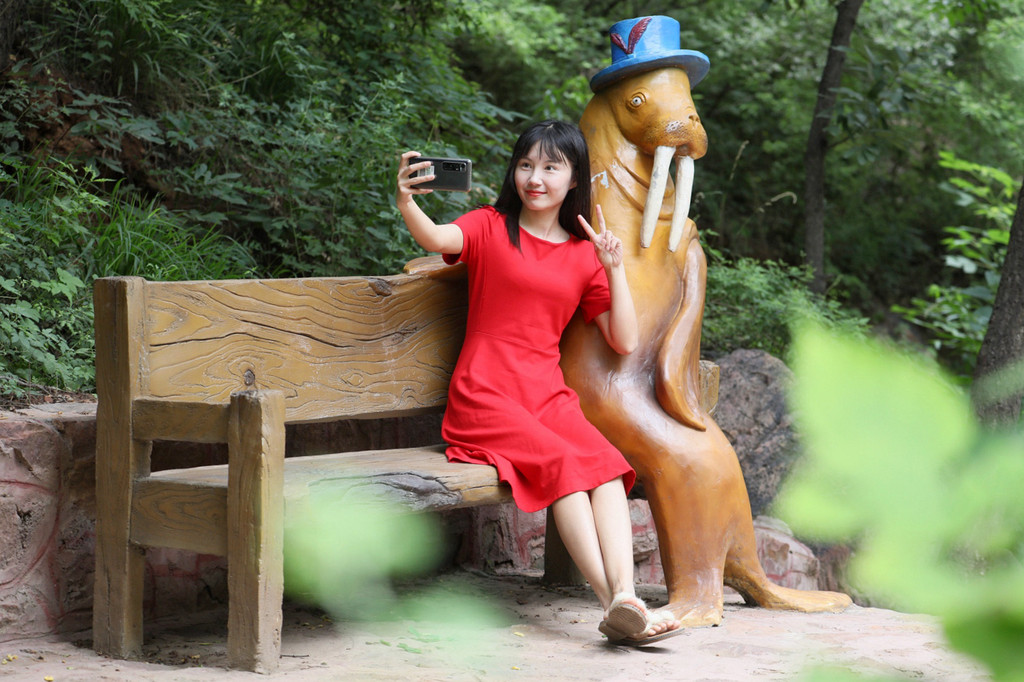 玩水不仅是孩子们最开心的事,我发现许多大人也手握一杆水枪,你来我往,快乐嬉戏。一打听,原来景区正在举办亲水避暑节的水枪大战活动,凭门票就有机会获得水枪。