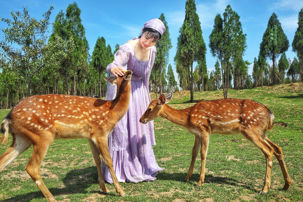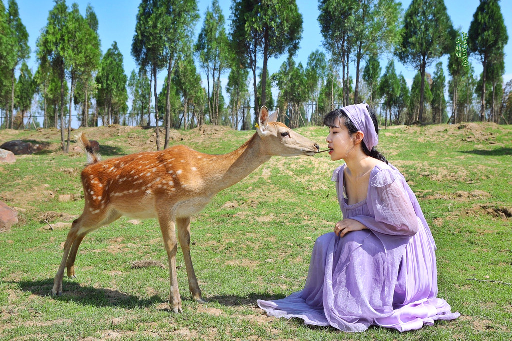 小鹿森林,是云上牧场最吸引人的地方。牧场里有两百多只梅花鹿,它们自由自在,无拘无束,性情温顺,喜欢与人亲近;云上牧场有专门提供给游人喂小鹿的草饼,是为小鹿特制的无添加绿色食品;小鹿看见我手里拿着草饼,便围过来亲昵地讨食,非常可爱;难怪游人都说“中国有小鹿森林,不用去日本的奈良公园了!”