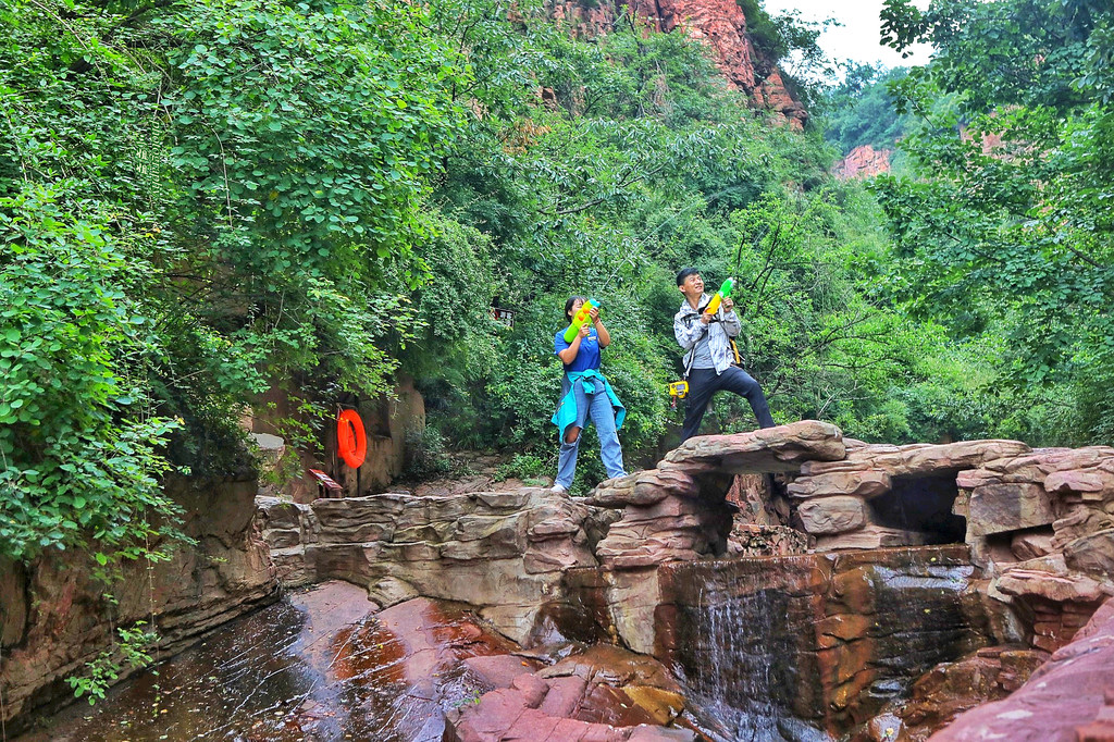 一、在伏羲大峡谷的瀑布群里来一场水枪大战