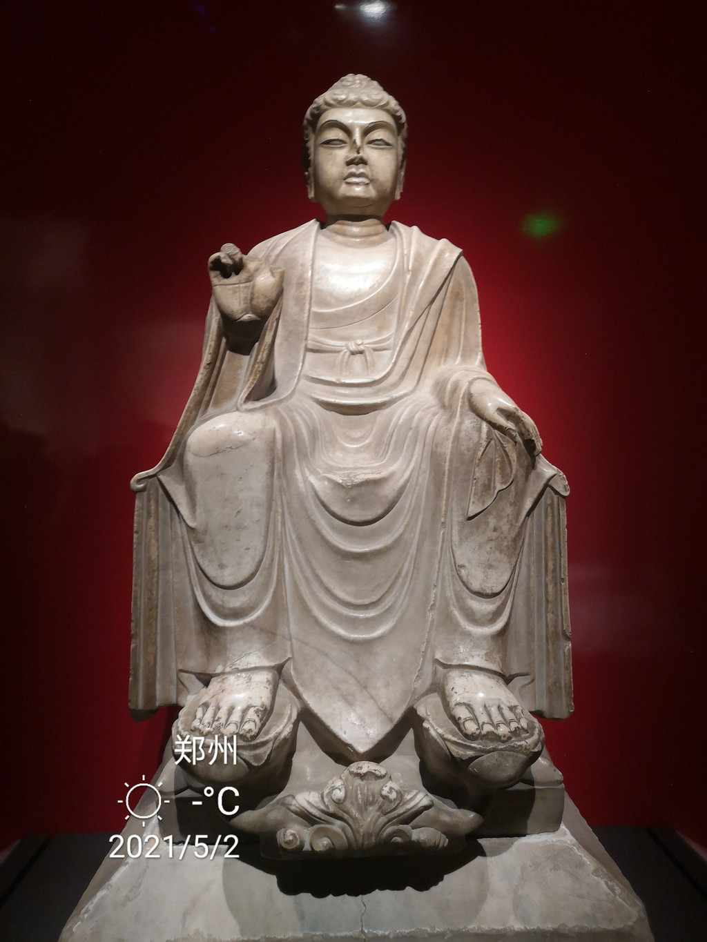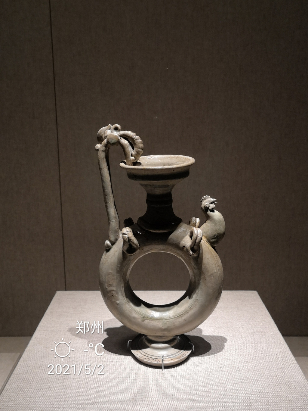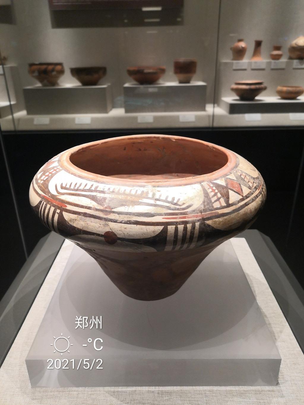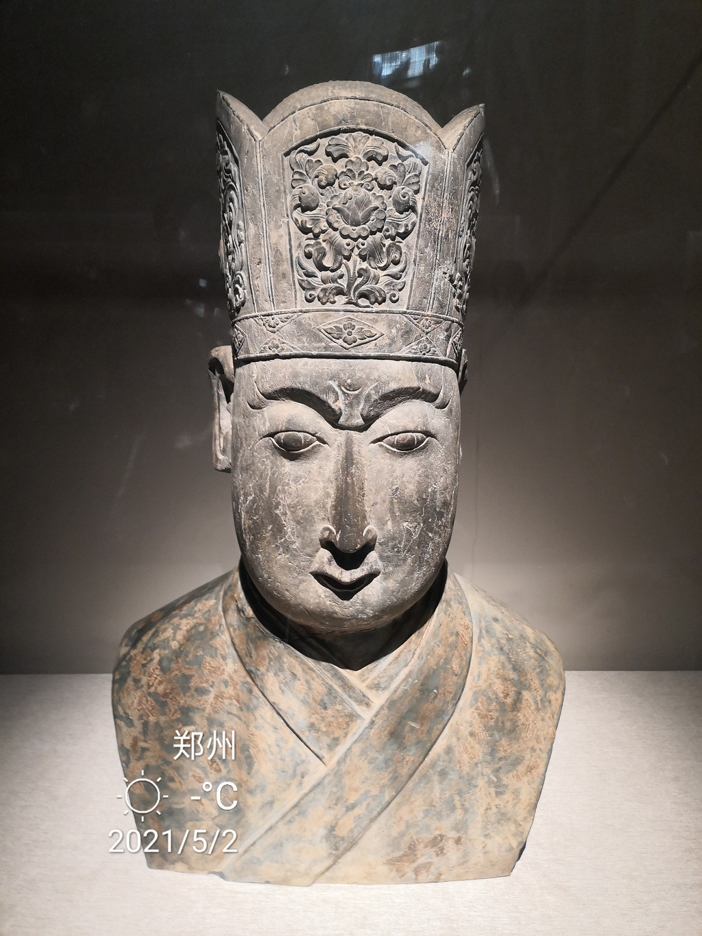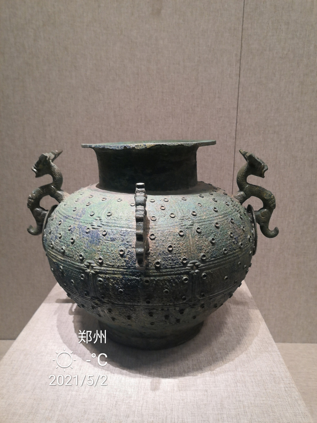 我们5月2日早晨8点左右出发,当天高速路上还不算拥堵,10点半左右赶到郑州,下高速,女儿给外甥女打电话,说我们已下高速,准备先去省博,问哪里停车方便,是否先到酒店,然后再地铁过去。外甥女回答,可直接去省博,如果先到酒店再去省博,由于两地相距较远,太耽搁时间。因此我们直接去了省博。导航引导至博物院门前,我们看到博物院门前停了许多车辆,似乎里面停车位已满,我们准备另作他图,忽然看到博物院正对,我们右边一家酒店有停车场对外开放,显示停车两个小时10元,超过一个小时加一元,只是挂牌车位已满。不过门口只停了一辆车等候车位,经我们下车询问,门卫告诉,如果有车位就可放行。还算幸运,不大会,里面有车离去,我们得以入内停车。安顿好,将近中午12点,已到饭时,而且距下午2点进入参观还有一段时间,决定先吃午饭。博物院正对那条马路往前不远,有一家烩面馆,吃客很多,这是郑州的招牌餐食,肯定要品尝一番,点了小菜烩面。餐后,时间12点半左右,如果等到2点,时间太久,我们决定尝试一下,看能不能直接进去,女儿他们肯定没有问题,关键是我们两人不在此时间段。博物院大门口只量体温,不检票,博物院场馆门内要刷身份证验票,我们顺利刷卡进入,没有拦阻。由此可见,所谓的时间段限制,并非那么严格,我们提前一个多小时进入,不也尝试成功。