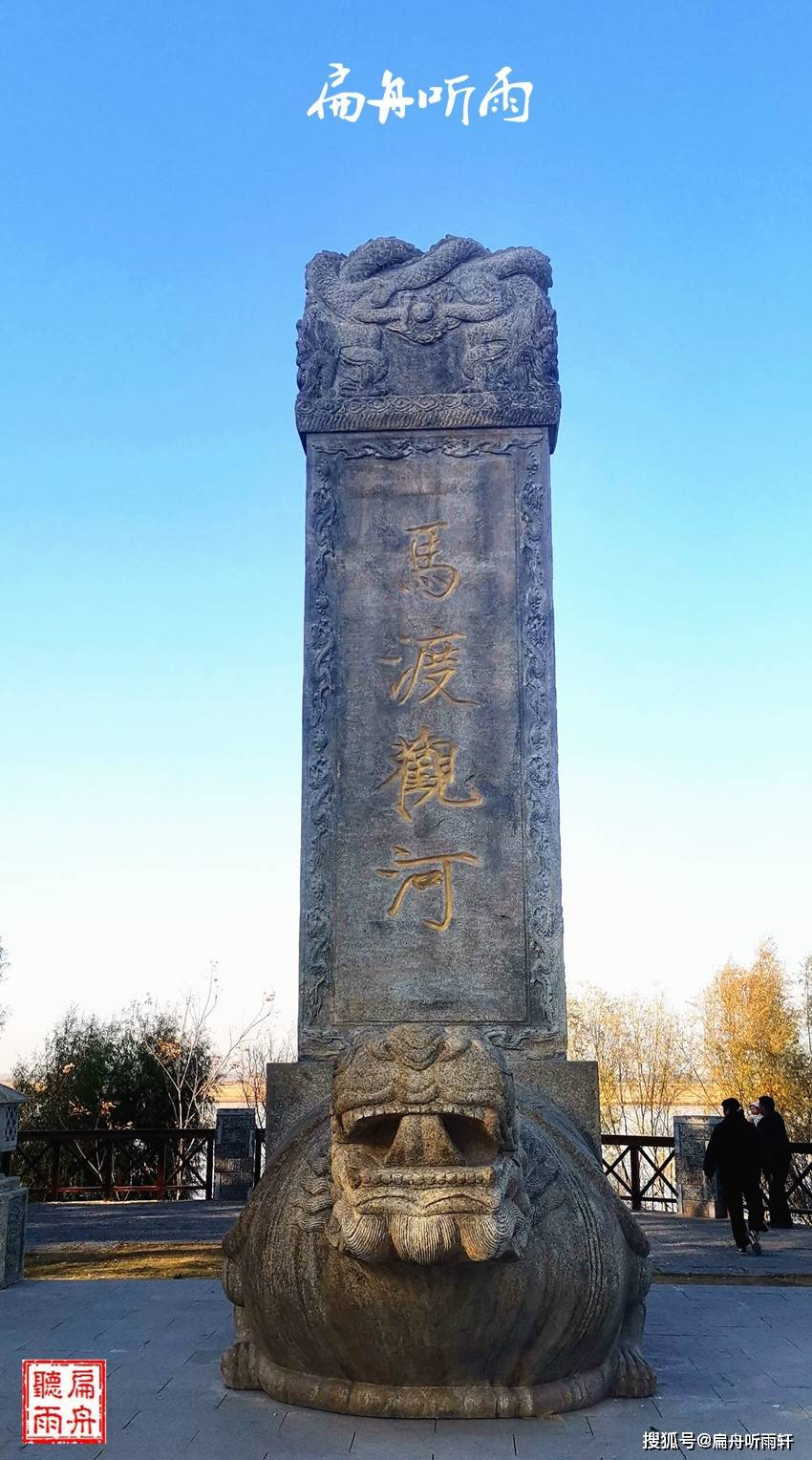 对,还是原来那个马渡,郑州市金水区姚桥乡马渡村的黄河边。观河,当然是观母亲河——黄河。只不过,原来没有这通龟驮的大碑,你不知道这里真的是一景,一处有文化有故事的美景。
